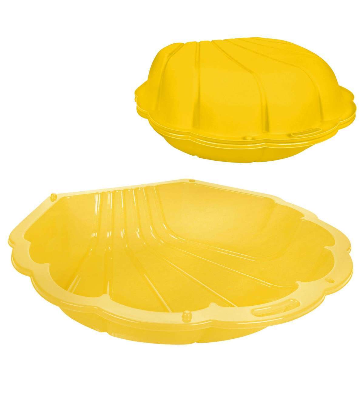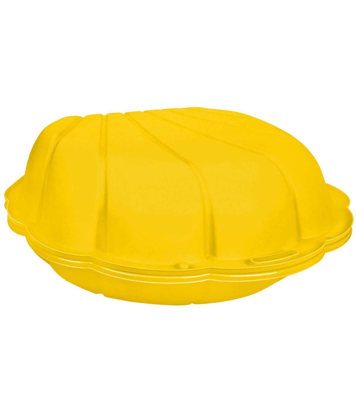 WOOPIE kollane koorekujuline liivakast, suletav, 2-ühes kuiv bassein, 1 tk.
