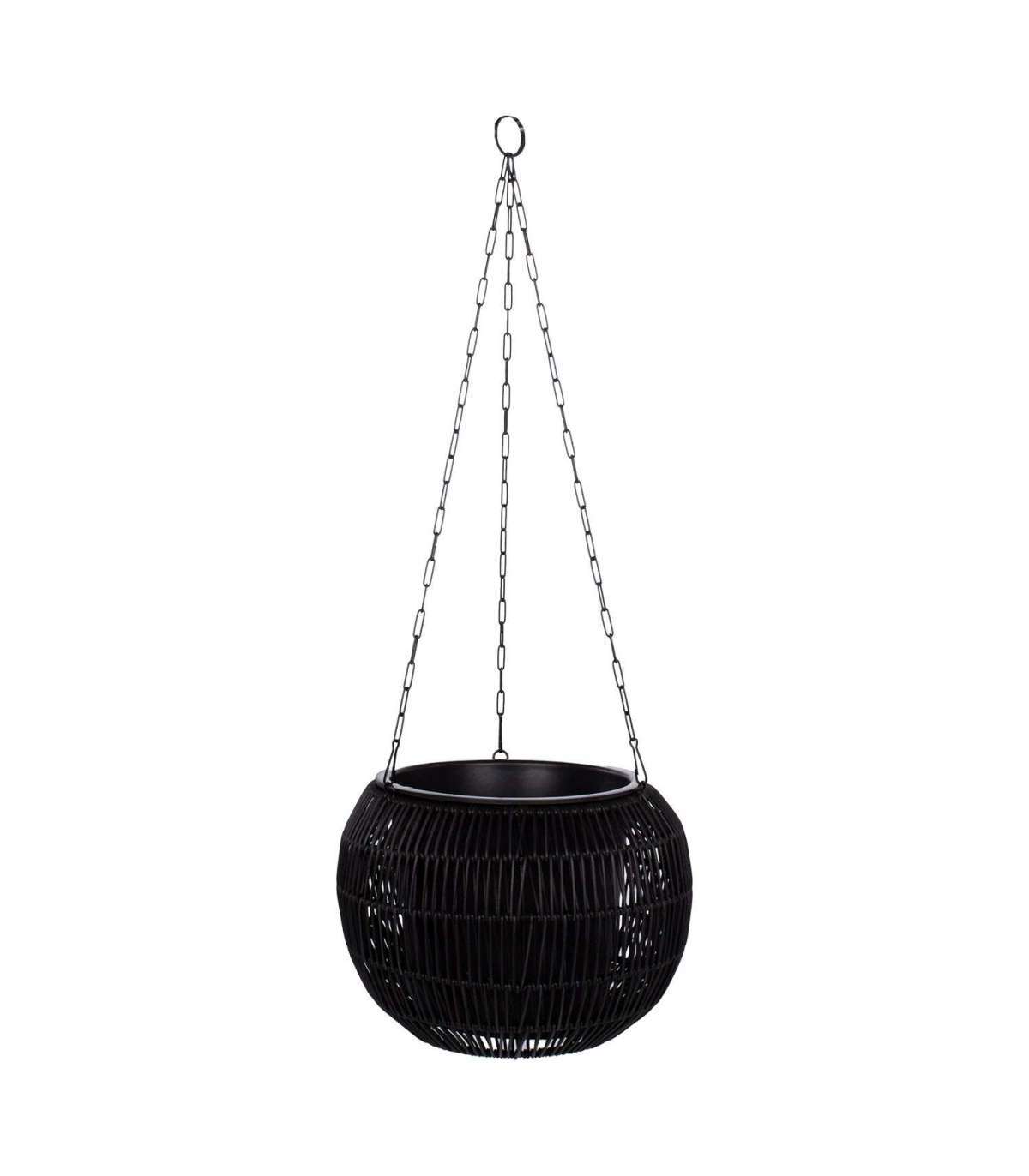 Lillepoti metallraam on kaetud plastikpunutisega.