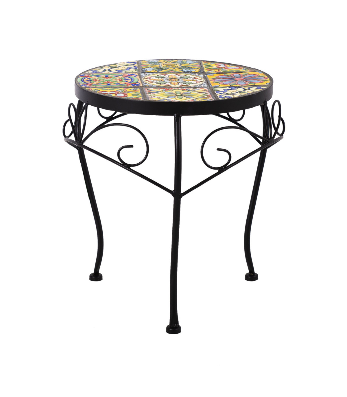 Lillepostament MOROCCO D30xH35cm. Pealmine mosaiikplaat on kaetud Morocco stiilis värviliste keraamiliste plaatidega. Metallist alusraam ja jalad on viimistletud musta pulbervärviga. Toode sobib kasutamiseks nii sise- kui väli tingimustes.
