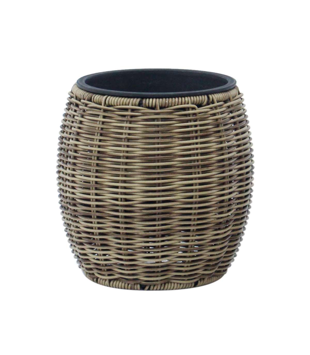 Lillepott WICKER D20xH20cm, helepruun. Lillepoti metallraam on kaetud plastikpunutisega. Plastikust sisepoti mõõdud on D14xH13cm. Sisepott on ilma auguta.