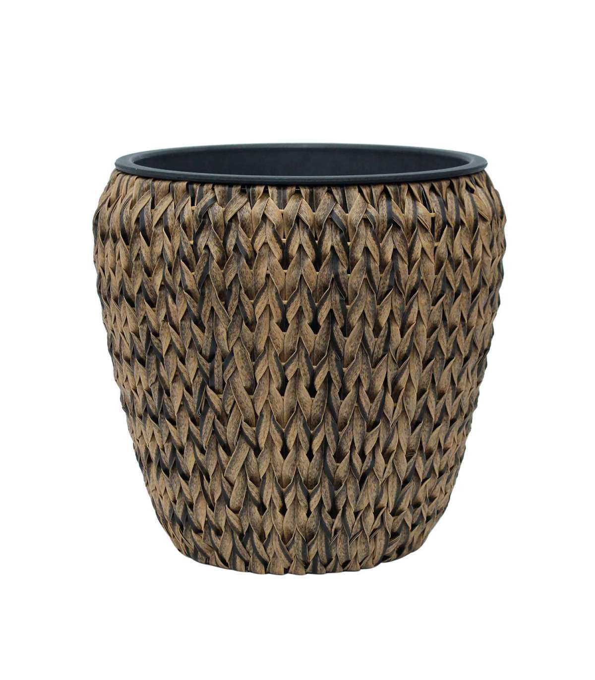Lillepott WICKER 28x28xH28cm, pruun. Lillepoti metallraam on kaetud plastikpunutisega. Plastikust sisepoti mõõdud on D21xH21cm. Sisepott on ilma auguta.