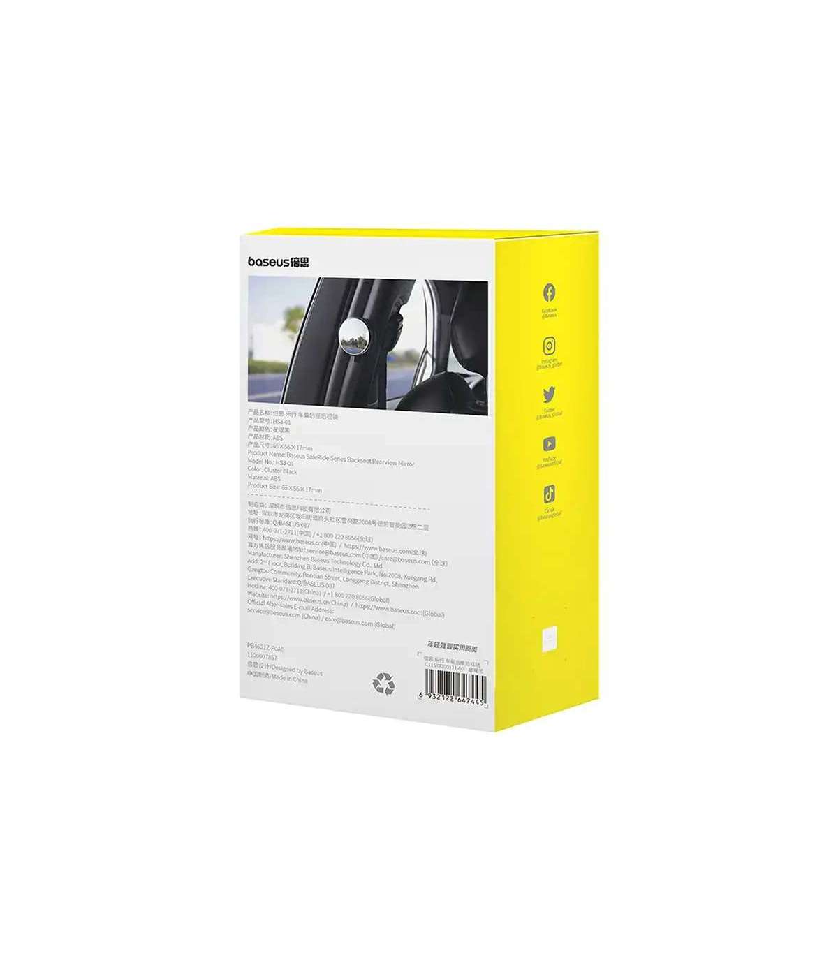 Baseus SafeRide is a mirror with a surface made of polished silver, which shows a clear image without reflections, giving you a much better view of the road and your surroundings.