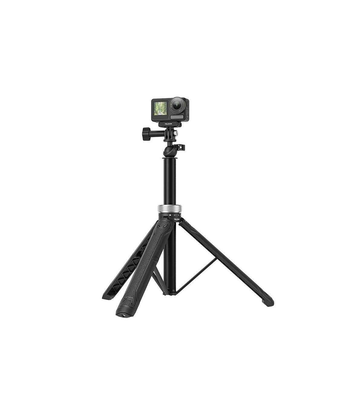 The Telesin S1-TSS-01 is an invaluable accessory for every filmmaking enthusiast. This practical selfie stick extends to a length of about 1.5 meters and, thanks to the use of top-quality materials, it is very durable and stable - no need to worry about it wobbling. The product can also serve as a tripod. It is equipped with 3 foldable legs that work perfectly on various types of surfaces - both flat and uneven.