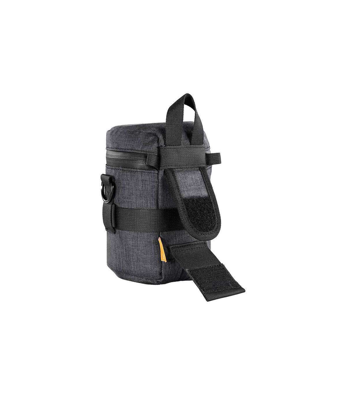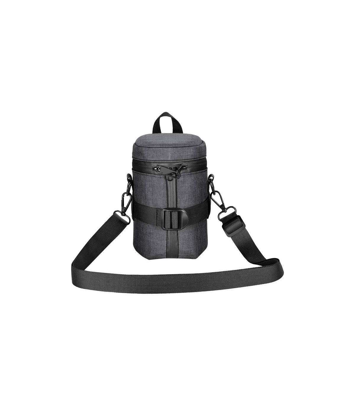 The bag has a side zipper that, when unzipped, increases capacity by an additional 27mm. This allows the bag to accommodate most DSLR and mirrorless lenses up to 100 x 140 mm in diameter and height. An adjustable buckle strap further stabilizes the lens inside the bag, preventing it from shifting and scratching.