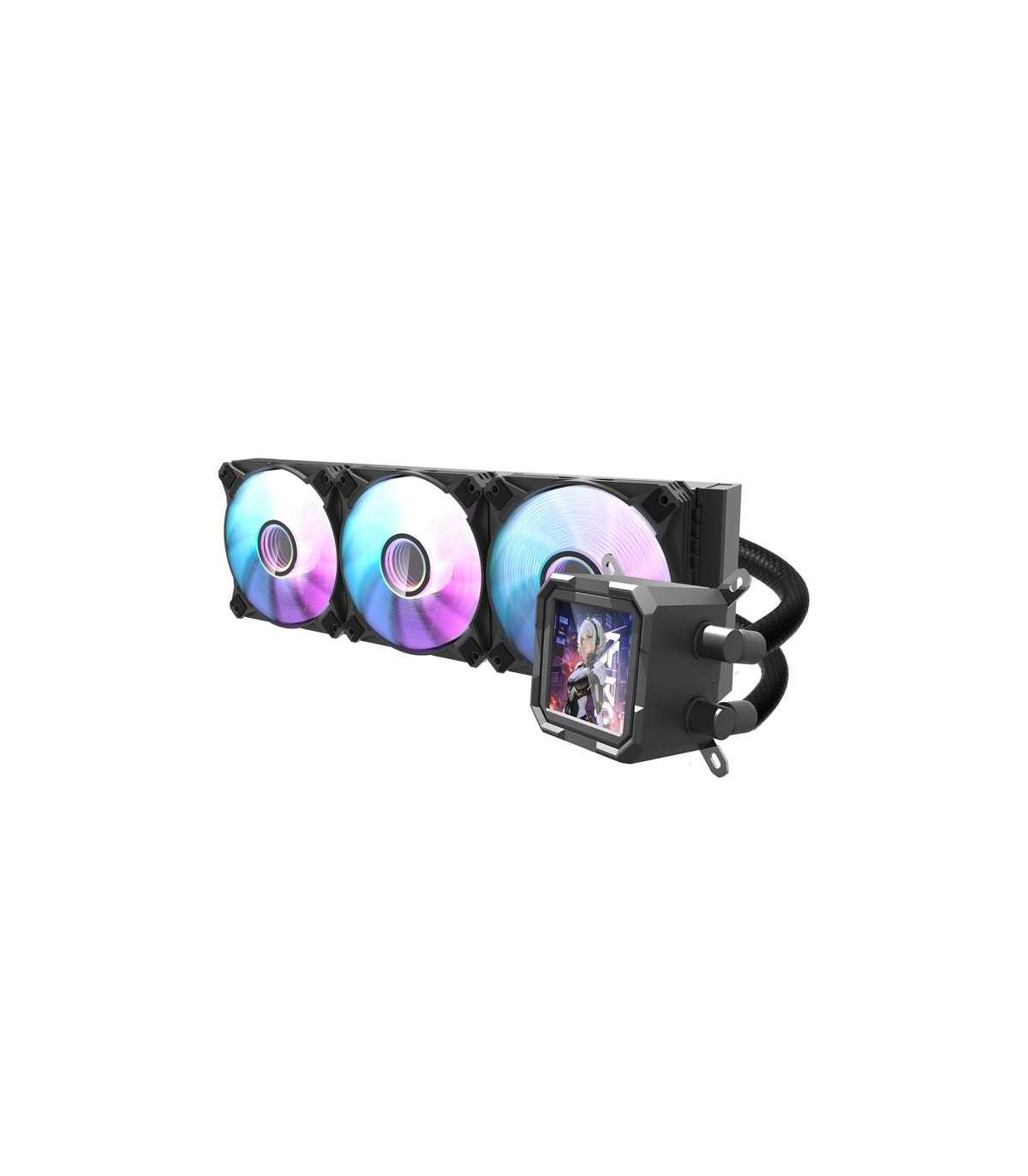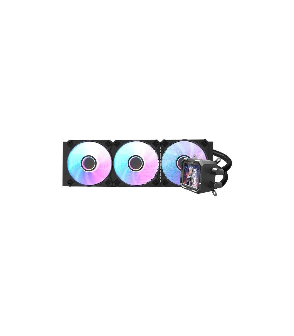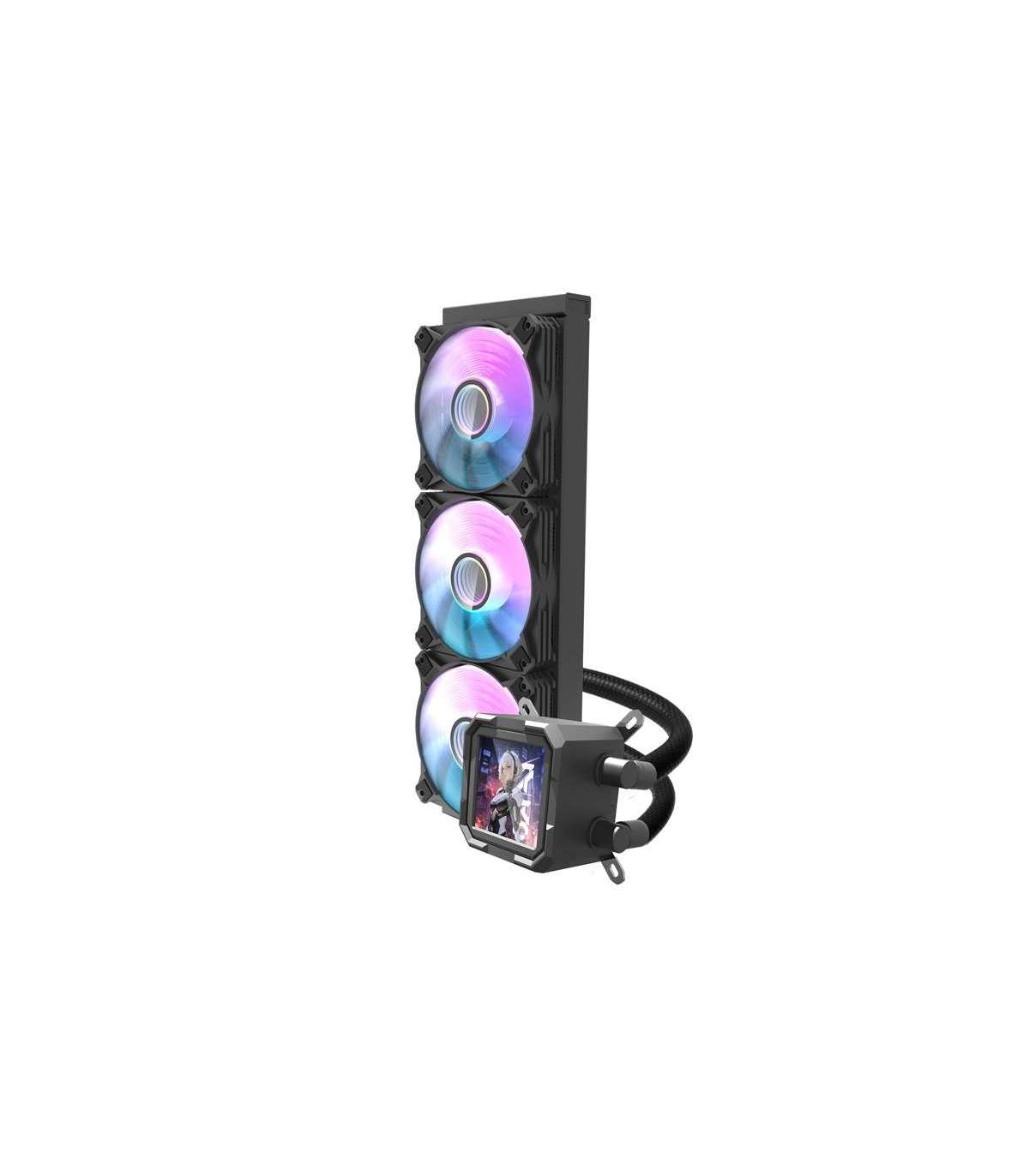 The Darkflash DV360S is an extremely powerful water cooler for Intel and AMD processors that combines advanced technology with a modernistic design. Equipped with a 360-millimeter heatsink and three low-noise PWM fans, it efficiently dissipates heat, ensuring stability even during intense gameplay. Its ARGB backlighting with 5V sync and IPS LCD screen allow you to fully personalize the visual effects. The copper water block and pump with ceramic bearings guarantee high cooling efficiency and long life. Flexible FEP cables simplify installation, and the aluminum heatsink supports overclocking. In addition, the PWM hub allows precise fan control, and the anti-vibration system reduces noise. The Darkflash DV360S is the ideal solution for demanding gamers who want top performance and stylish design from their device.