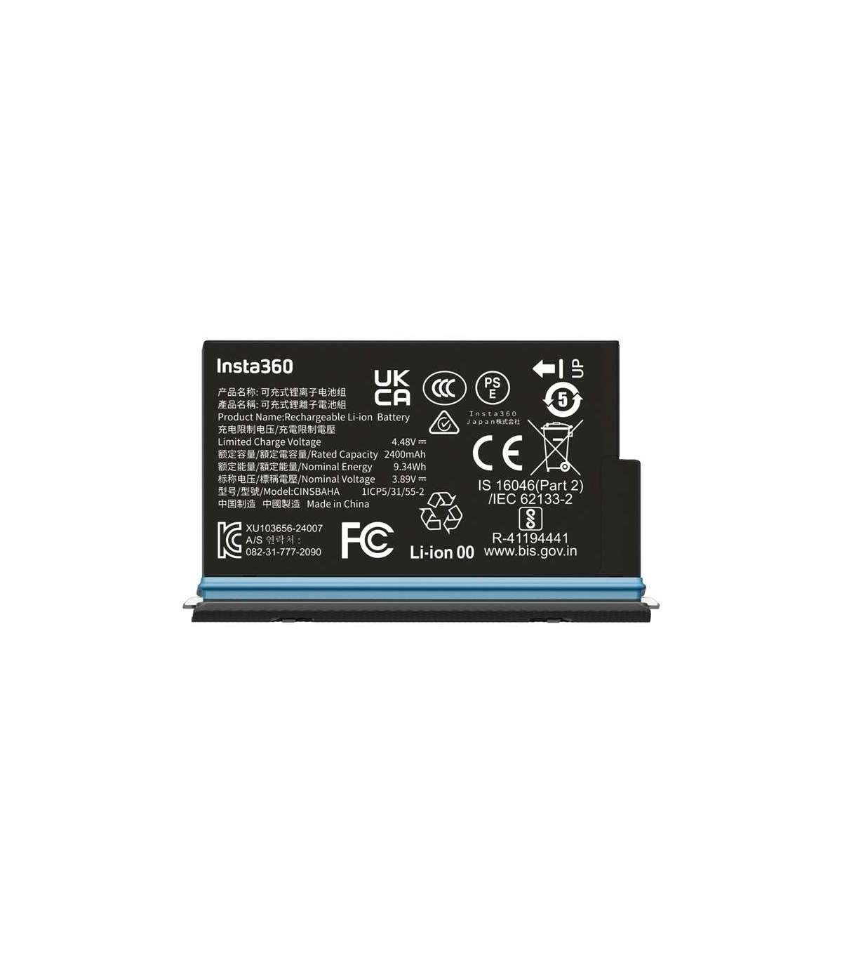 The Insta360 rechargeable battery is a reliable power source created specifically for the X5 camera. With a capacity of 2400 mAh, it provides up to 135 minutes of 5.7K/30FPS recording, allowing you to fully focus on creating without the need for frequent recharging. It's the perfect choice for creators who don't recognize compromise!
