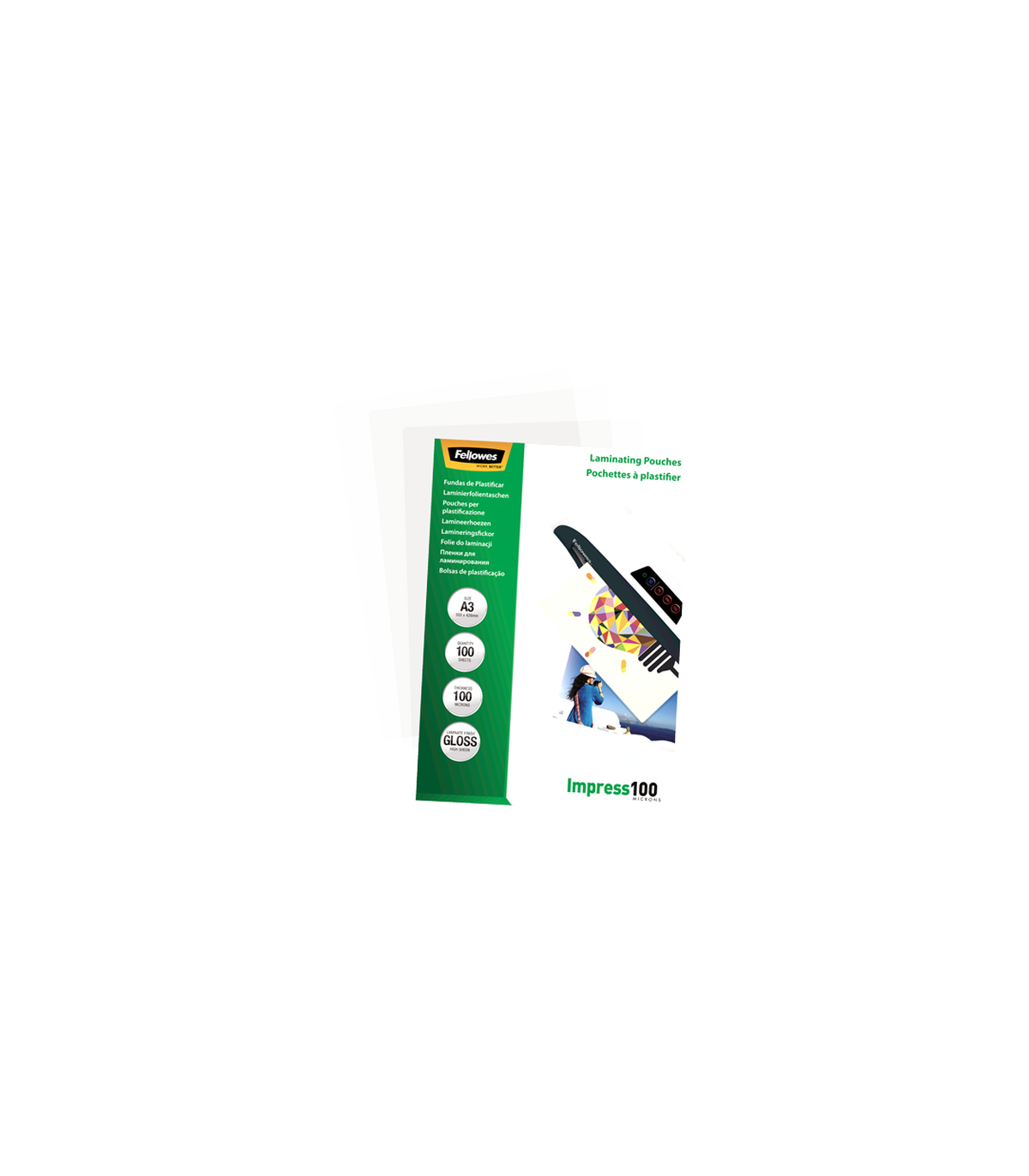 Fellowes Laminating Pouch A3 Glossy Thickness: 100 micron, Qty Per Pack: 100 pcs Ideal for notices, craft