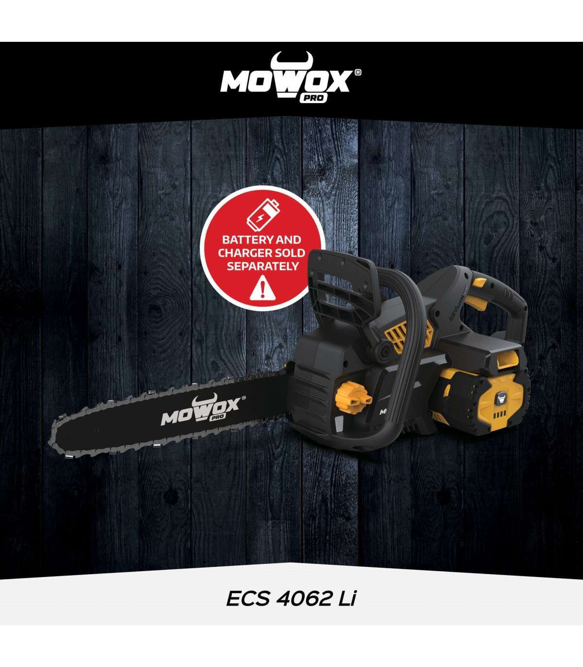 MoWox | Excel Series Hand Held Battery Chain Saw With Toolless Saw Chain Tension System (Without Battery and Charger) | ECS 4062 Li | 62 V | Lithium-ion technology
