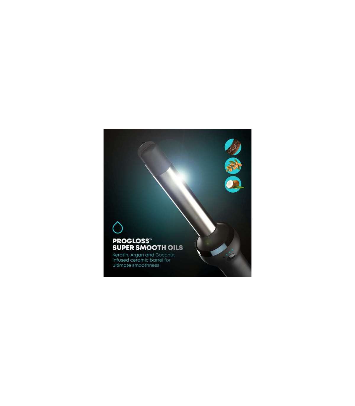 Iooniline ja keraamiline tünn, mis on infundeeritud Progloss™ ülipehme keratiini, argaania- ja kookosõliga