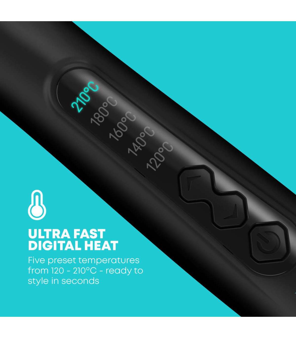 5 eelseadistatud digitaalset temperatuuri 120 ºC – 210 ºC – valmis stiiliks mõne sekundiga