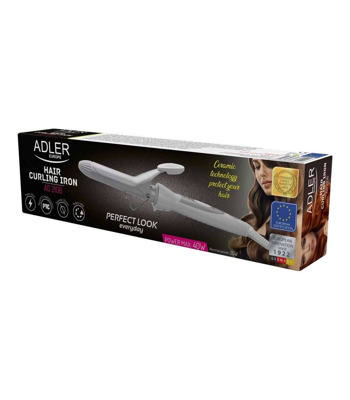 Ceramic technology provides even heat distributio; Rapid heating (PTC); Comfortable grip and ergonomic design; The ability to create whatever kind of curl suits