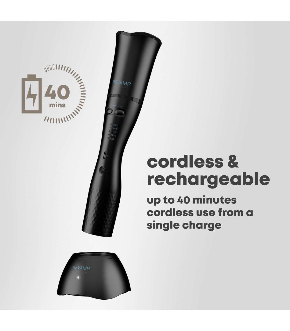 Suure jõudlusega, kauakestev (tüüpilise kasutaja jaoks kuni 40 minutit kasutusaega) juhtmevaba sirgendaja ja stiilija, mis töötab liitiumioonaku tehnoloogiaga.