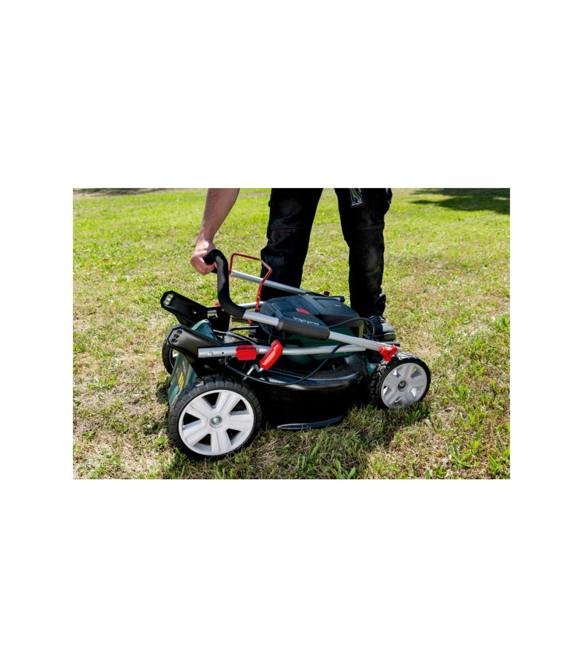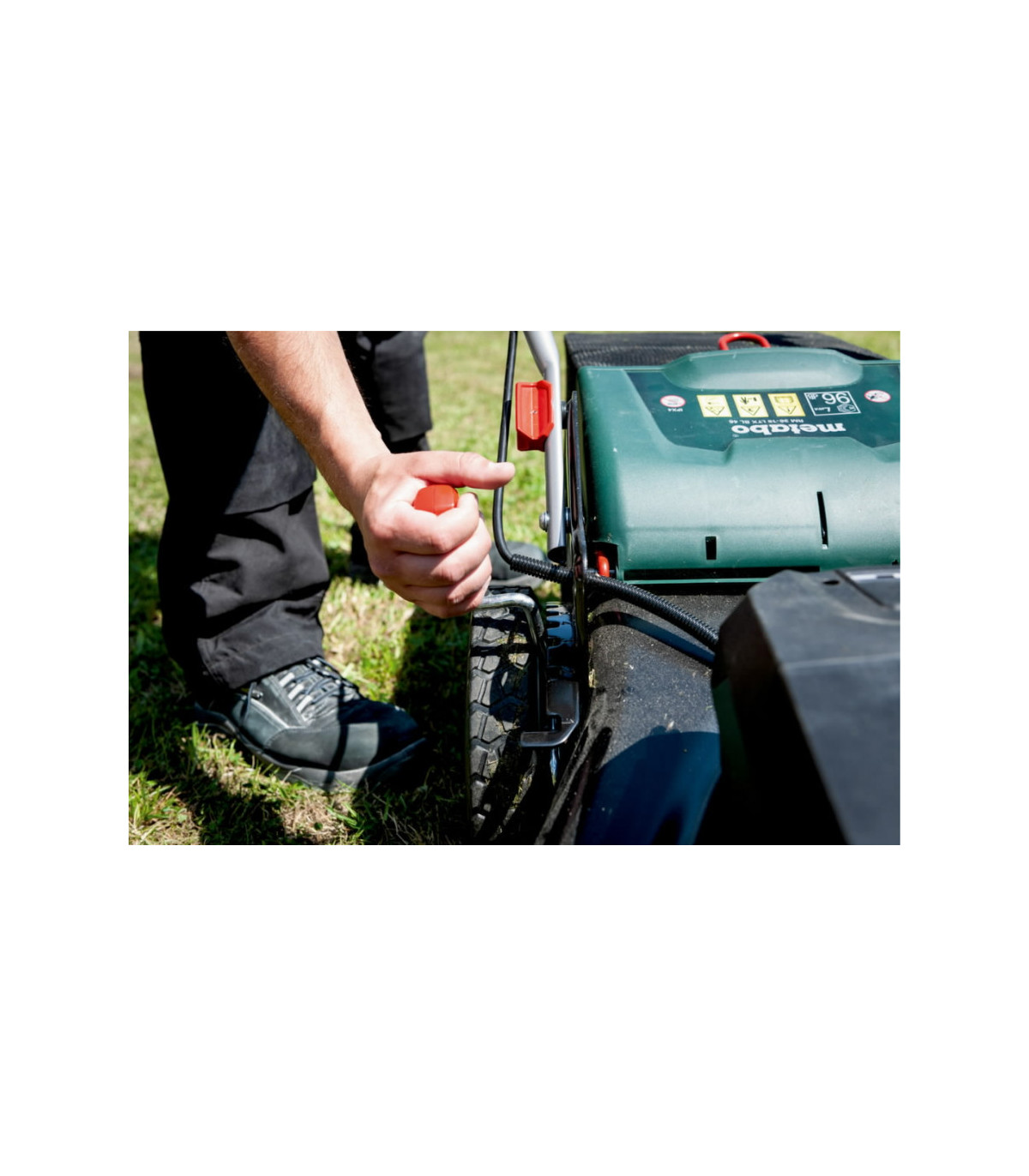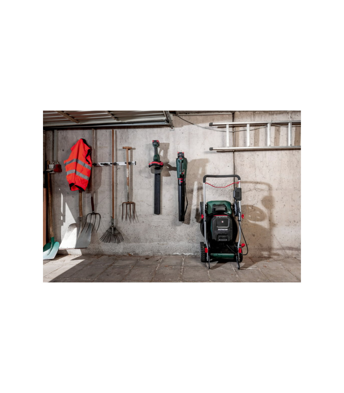 Karkass ilma akude ja laadijata Harjavaba Akupinge 2 x 18 V Lõikelaius 46 cm Lõikekõrgus 25 - 80 mm Lõikekõrguse astmeid 7 Kogumiskoti maht 55 l pöörlemiskiirus tühikäigul 2.800 /min suurim pöörlemissagedus 3.400 /min Kaal (koos akuga) 25,3 kg Vaikne akutoitega muruniiduk kuni 800 m² muruplatsi tõhusaks niitmiseks, rohukogumiseks ja mult?miseks • Hekseldus paisatakse tagant välja, kogutakse järeleandvasse kogumiskotti ja mult?takse kohe • Tugev harjadeta mootor, mis tagab suure lõikejõudluse ja pika tööea ühe laetud aku kohta • Automaatne mootori jõudluse kohandamine vastavalt rohu pikkusele maksimaalse aku tööea ärakasutamiseks • Tsentraalne, lihtsasti käsitsetav lõikekõrguse seadistamine 7 astmel • Lihtne juhtimine ja trajektooril püsimine tänu kergetele sõiduratastele ja kummeeritud haardepiirkonnaga reguleeritava kõrgusega eesmisele käepidemele • Tugev ja pika tööeaga tänu metallist kattele ja ülikvaliteetsele lõike teradele • Topeltkaitse isekäivitumise vastu tänu turvavõtmele ja kaitselülitile • Lihtne transportimine ja ruumisäästev hoiustamine tänu hoidepidemetele ja kahekordselt kokkuklapitavale käepidemele • Hästi nähtav mahtuvusnäidik aku täituvusastme kontrollimiseks • Keskkonnasõbralik ja vaikne tänu akutoitere˛iimile, mistõttu sobib see kasutamiseks ka müratundlikes piirkondades • 100% ühilduvus 18 V klassiga: jõuline 36 V talitlus kahe 18 V Metabo akupakiga Tarnekomplekt Kogumiskott, Lõikeseadise vikat, Mult?miskiil, Turvavõti, ilma akuta, ilma laadimisseadmeta Sobivad akud: 625592000&MET - 5,2Ah 625368000&MET - 5,5Ah LiHD 625369000&MET - 8,0Ah LiHD 625549000&MET - 10Ah LiHD Sobivad laadijad: 627044000&MET - Laadija ASC 55 12-36 V 627378000&MET - Kiirlaadija ASC 145 12-36 V 627495000&MET - 2-kohaline kiirlaadija ASC 145 12-36 V + 2xUSB porti