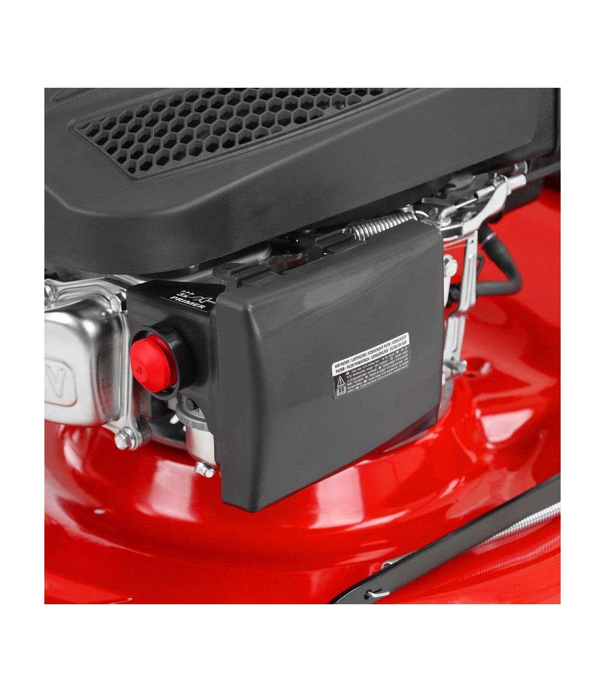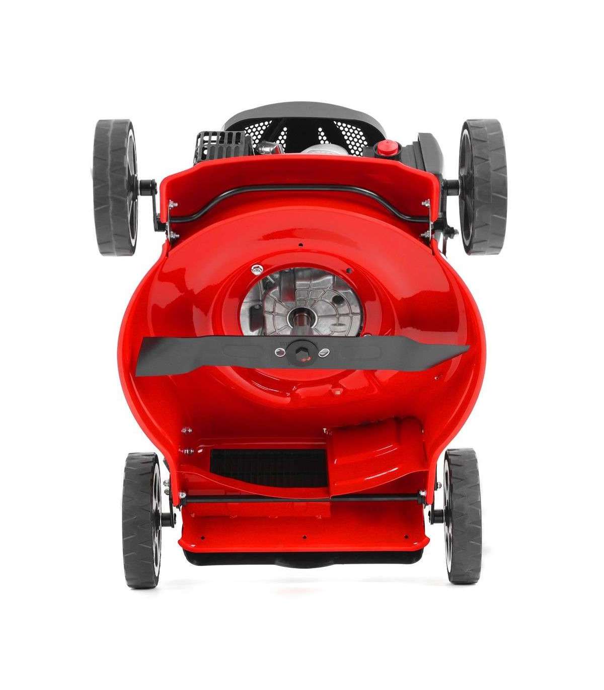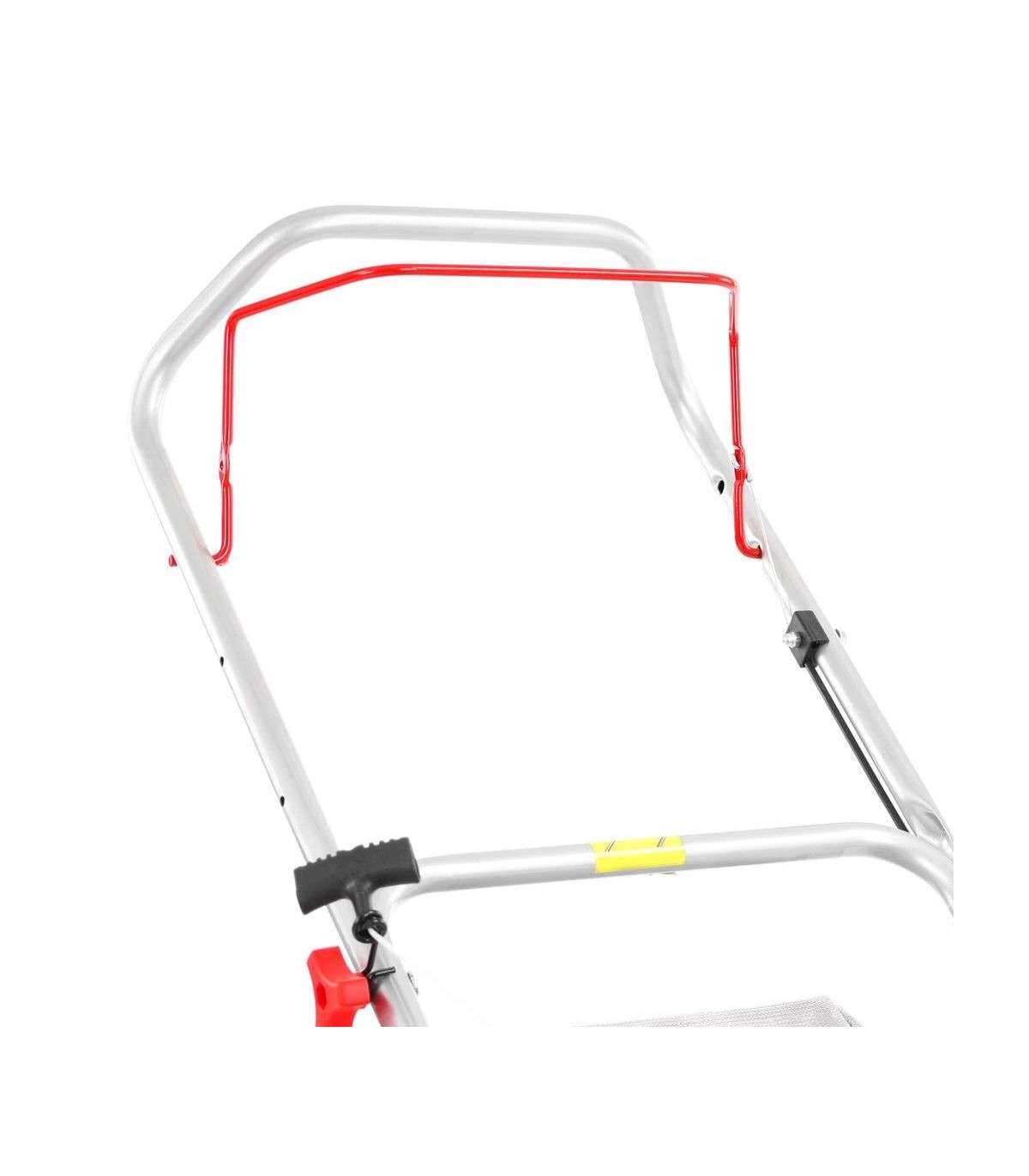 Niitmislaius 46 cm, niitmiskõrguse reguleerimine 25-65 cm. Tugev metallist korpus. 4-taktiline mootor, töömaht 150 cm3. Maksimaalne pöördemoment 7,5 Nm. Kangast korvi maht 55 l. Rattad ees/taga 7/8". Kaal 25 kg. Kokkupandav käepide hoiustamiseks.