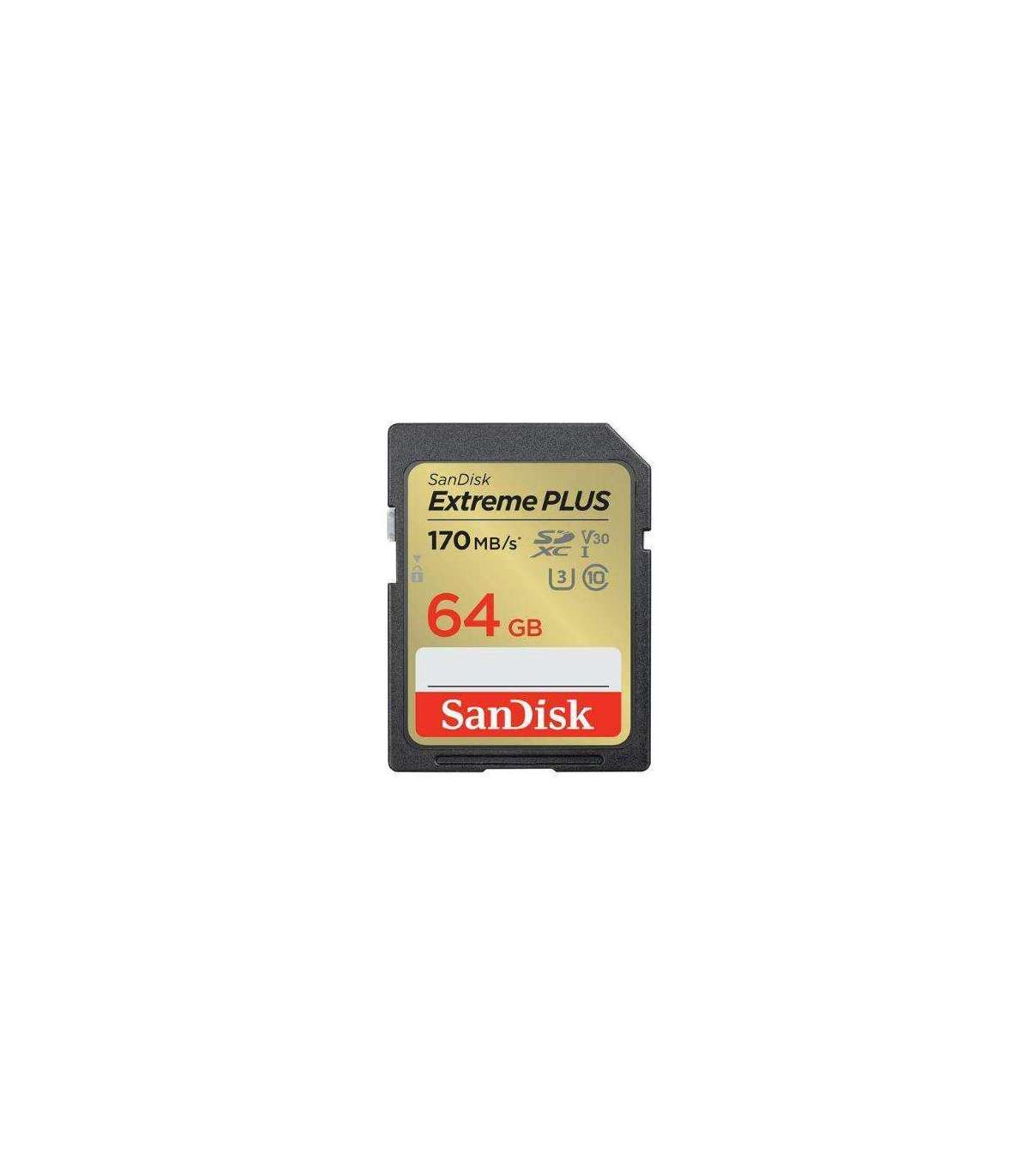 SanDisk Extreme PLUS 64GB SDXC Memory Card + 2 years RescuePRO Deluxe up to 170MB/s & 80MB/s Read/Write speeds, UHS-I, Class 10, U3, V30