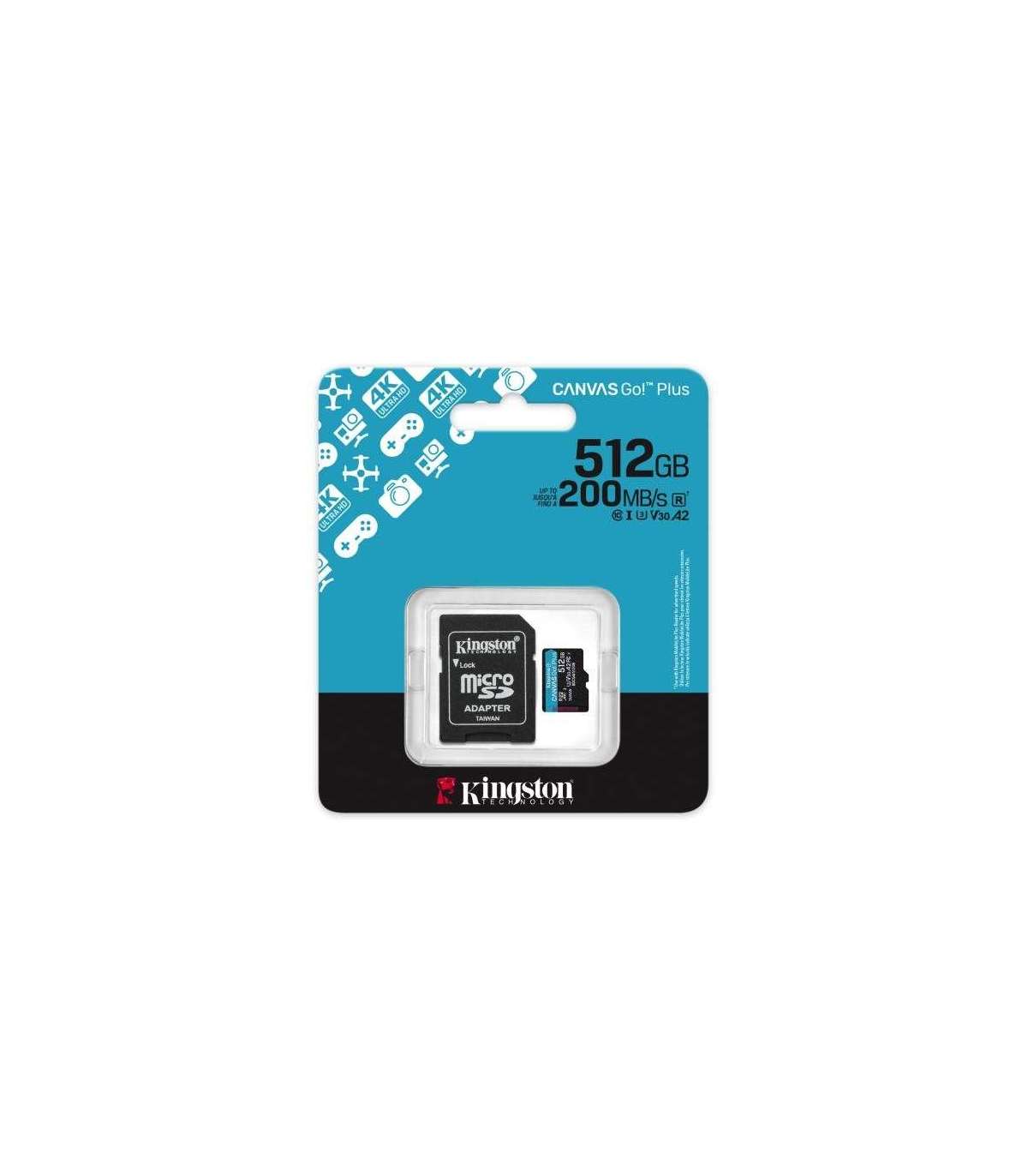 Kingston SDCG4/512GB Canvas Go Plus Gen4 MicroSD + Adapter, 512GB, Class 10, UHS-I, A2 U3 V30