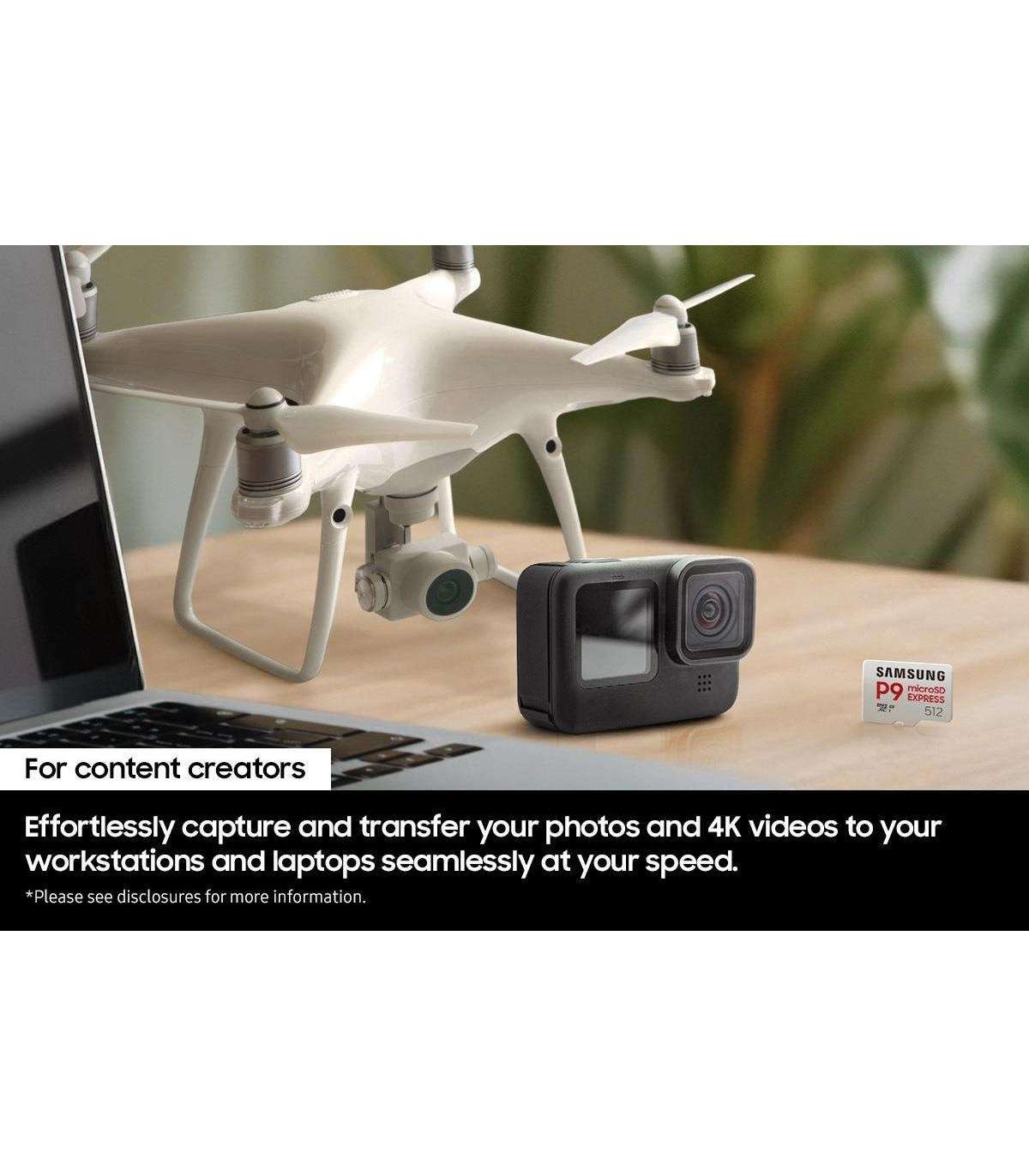 [1] Based on internal testing with the P9 Express microSD card 512GB measured using a PCIe test board, compared to UHS-I microSD cards tested with PRO Ultimate microSD card 512GB and Samsung readers. Actual performance may vary depending on the host device, interface, usage conditions, and other factors.