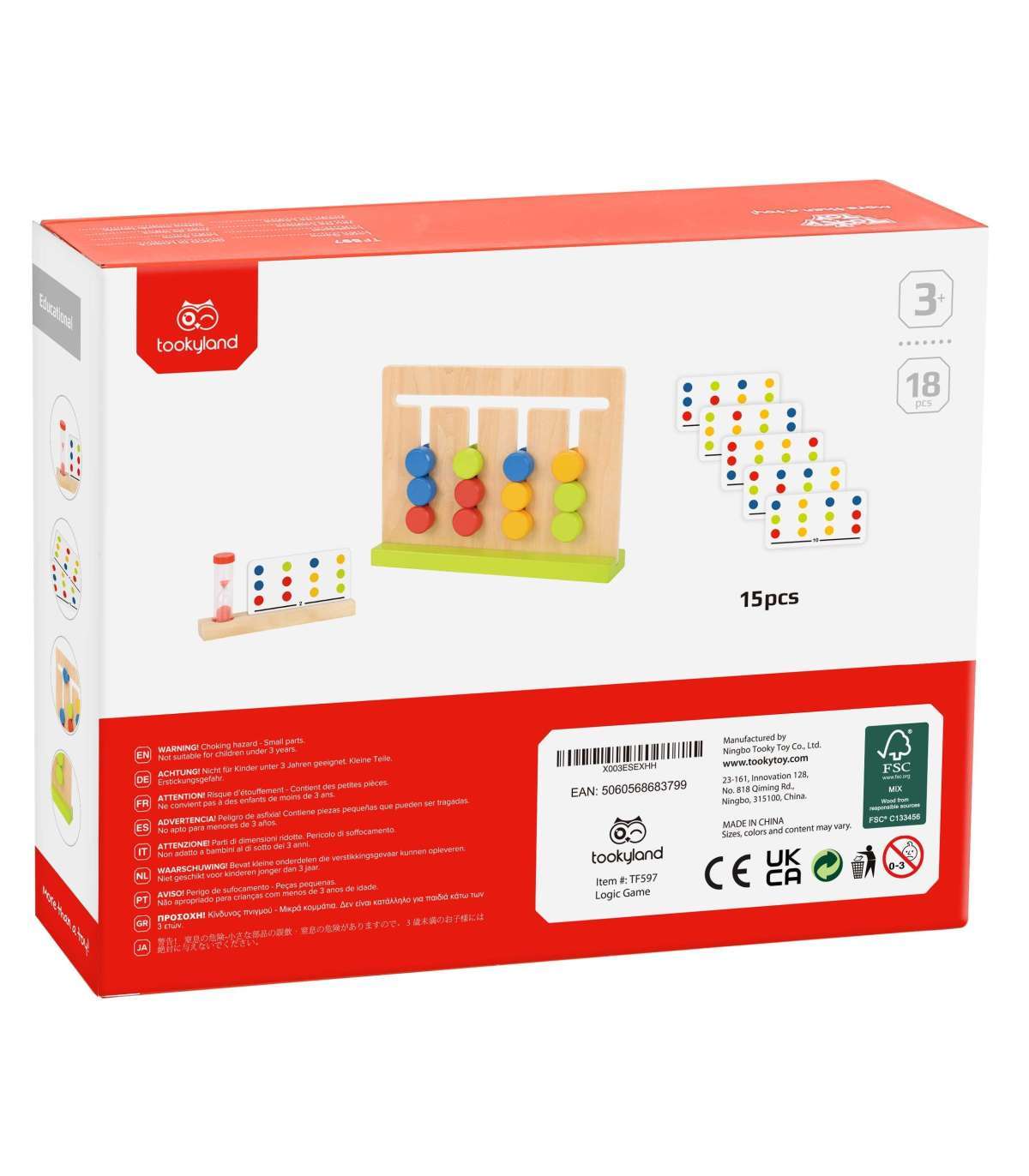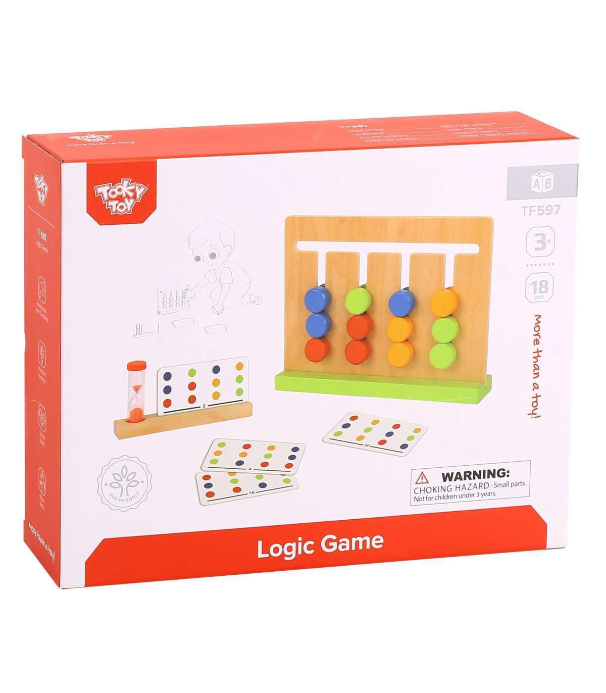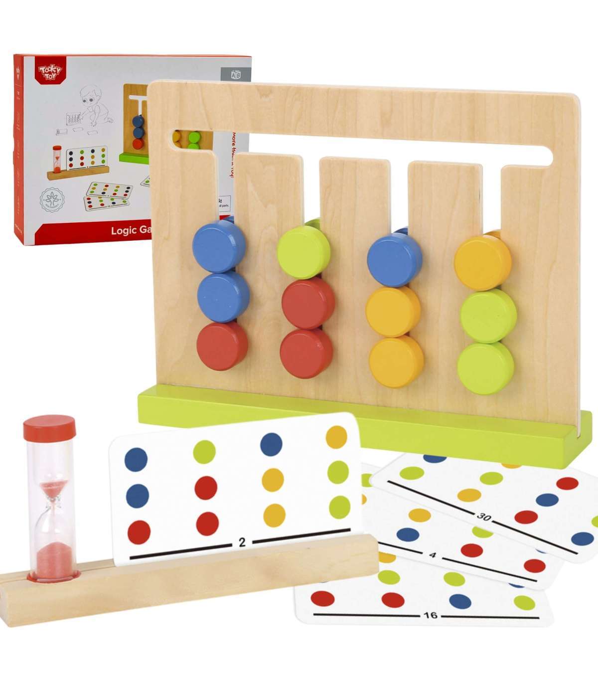 Tooky Toy loogikamäng pakub teie lapsele palju tunde interaktiivset mängu, mille jooksul ta õpib põhilisi värve ja erinevaid mustreid. Mänguasi tarnitakse koos puidust raami, liivakellaga ja 15 kahepoolse kaardiga, millel on kokku 30 mustrit. Lapse ülesanne on kopeerida kaardil olev mustr määratud aja jooksul.