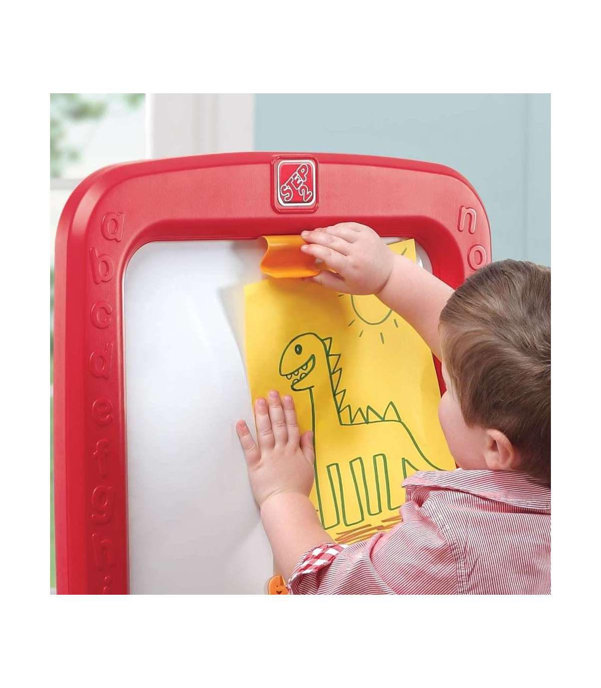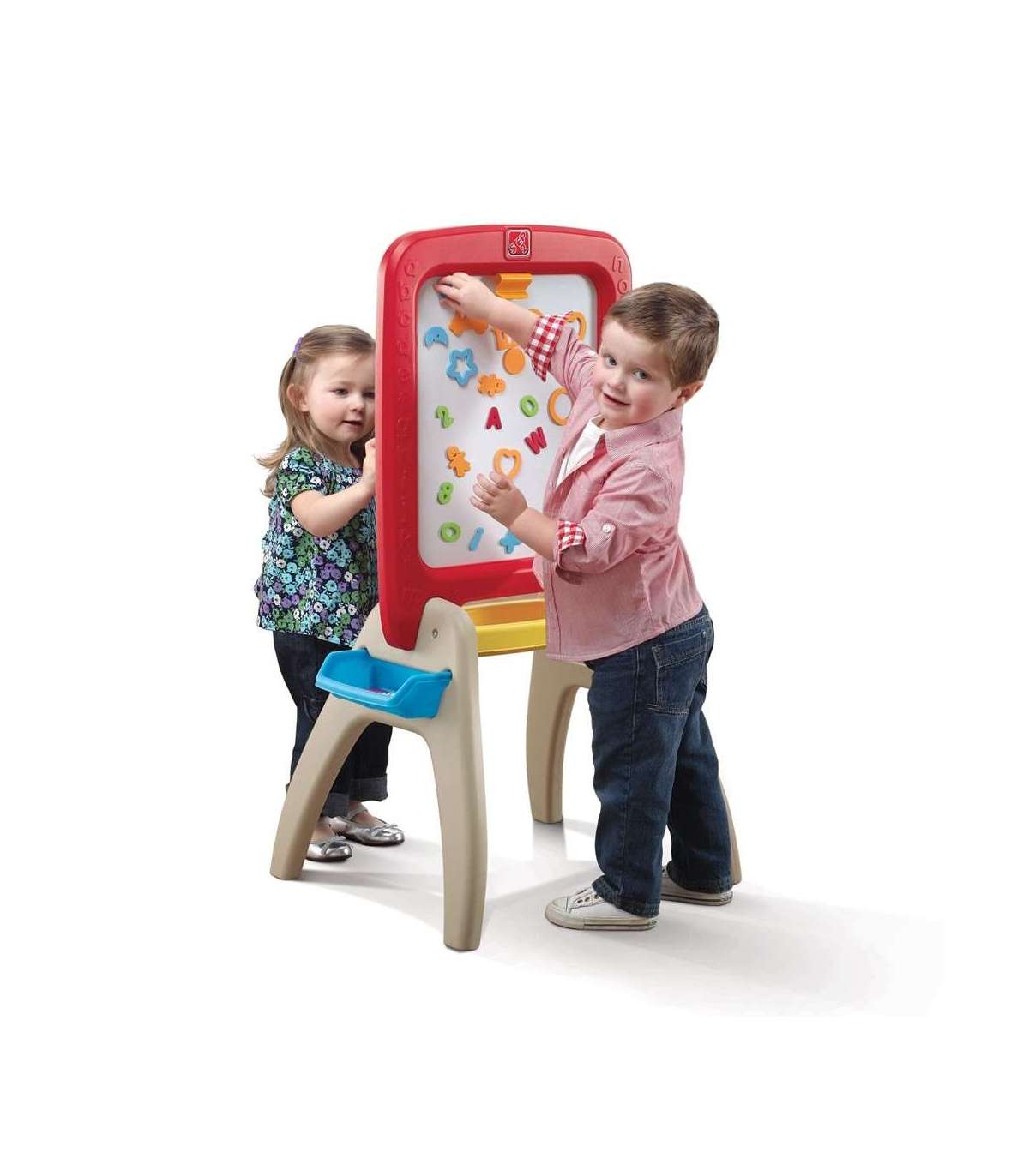 Step2 kahepoolne tahvel väikelastele - ühel küljel traditsiooniline kriiditahvel ja teisel pool markeriga kuivkustutatav tahvel ning võimalus kinnitada vahust magnettähti, numbreid ja sümboleid. Kokku komplektis on kuni 94 osa. See aitab luua laste kunstiteoseid ning toetab vanemate laste õppimist. Väikesed kunstnikud võivad näidata loovust, arendades peenmotoorikat kirjutamise, joonistamise ja magnetite asetamise ajal. Nõuab täiskasvanute poolt minimaalset kokkupanekut, tahvel paigaldub kiiresti ja lamab lamedalt lihtsaks hoiustamiseks. Valmistatud USA-s, mõned osad imporditud.