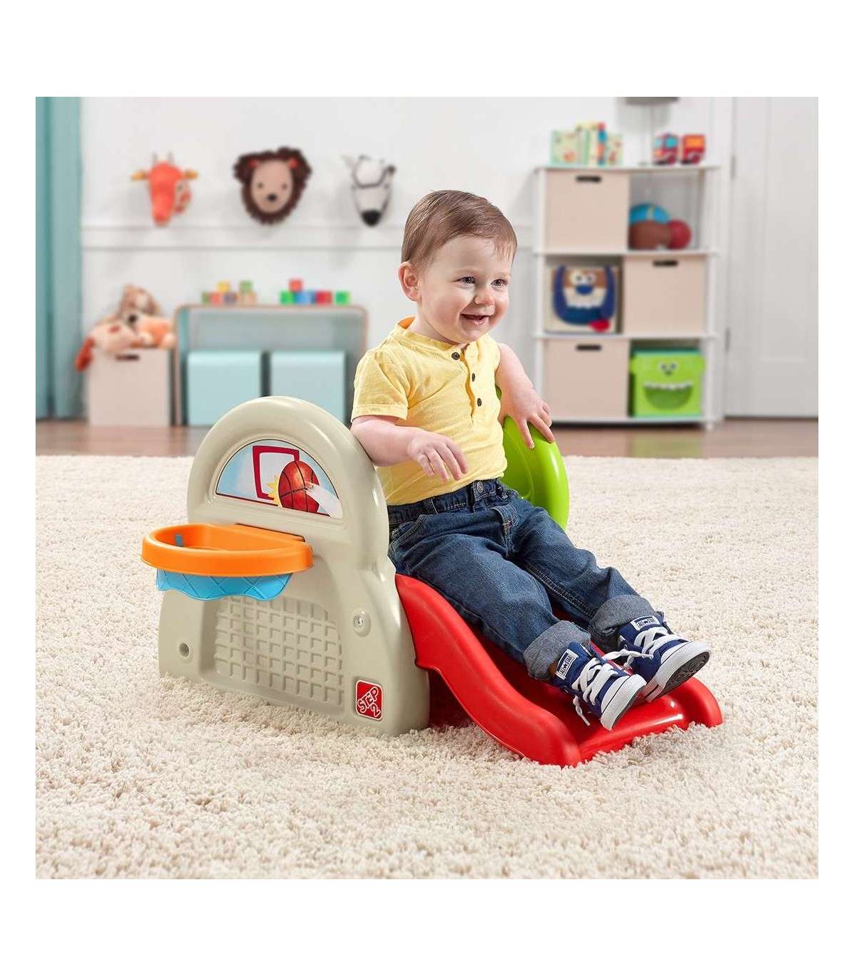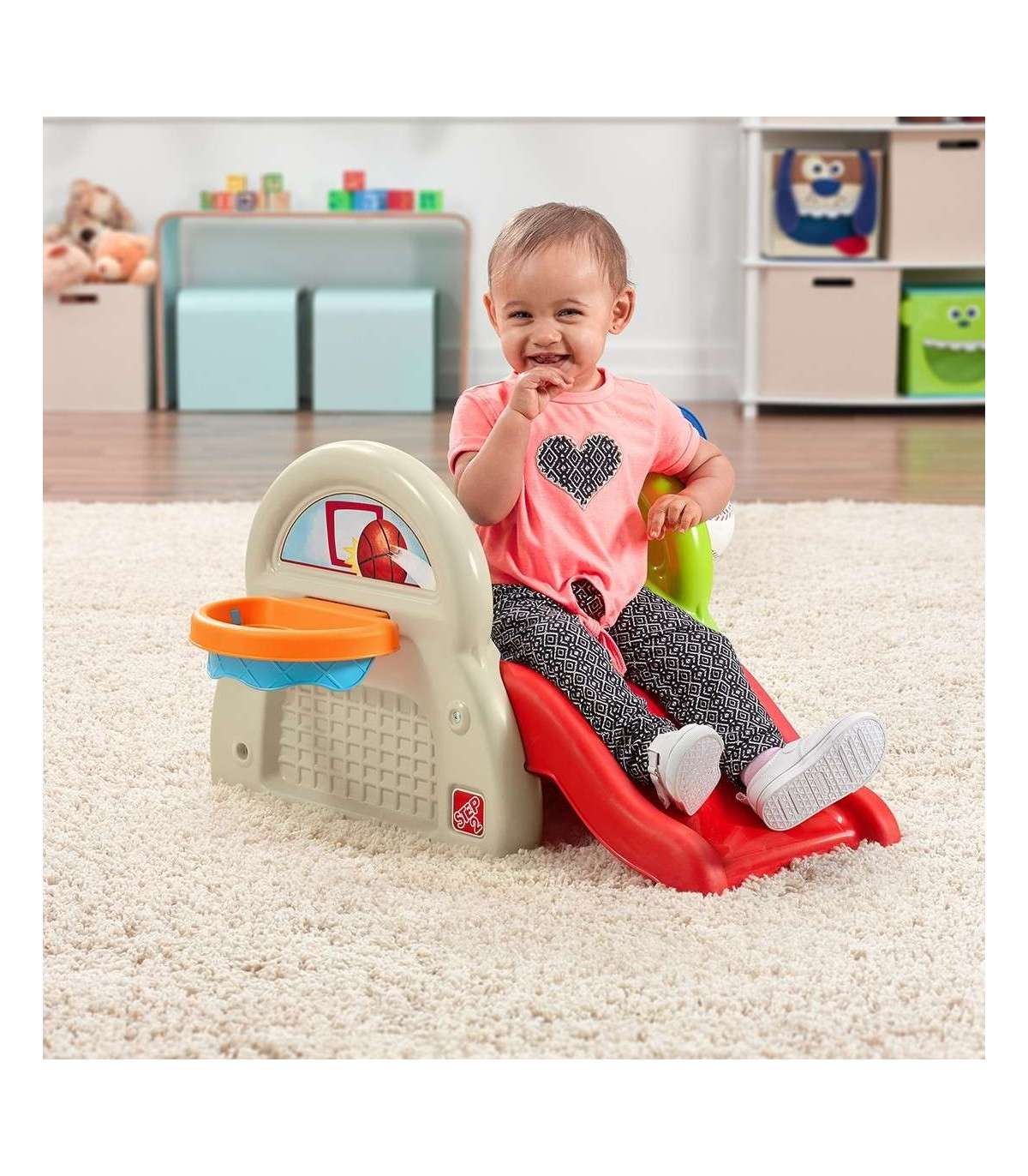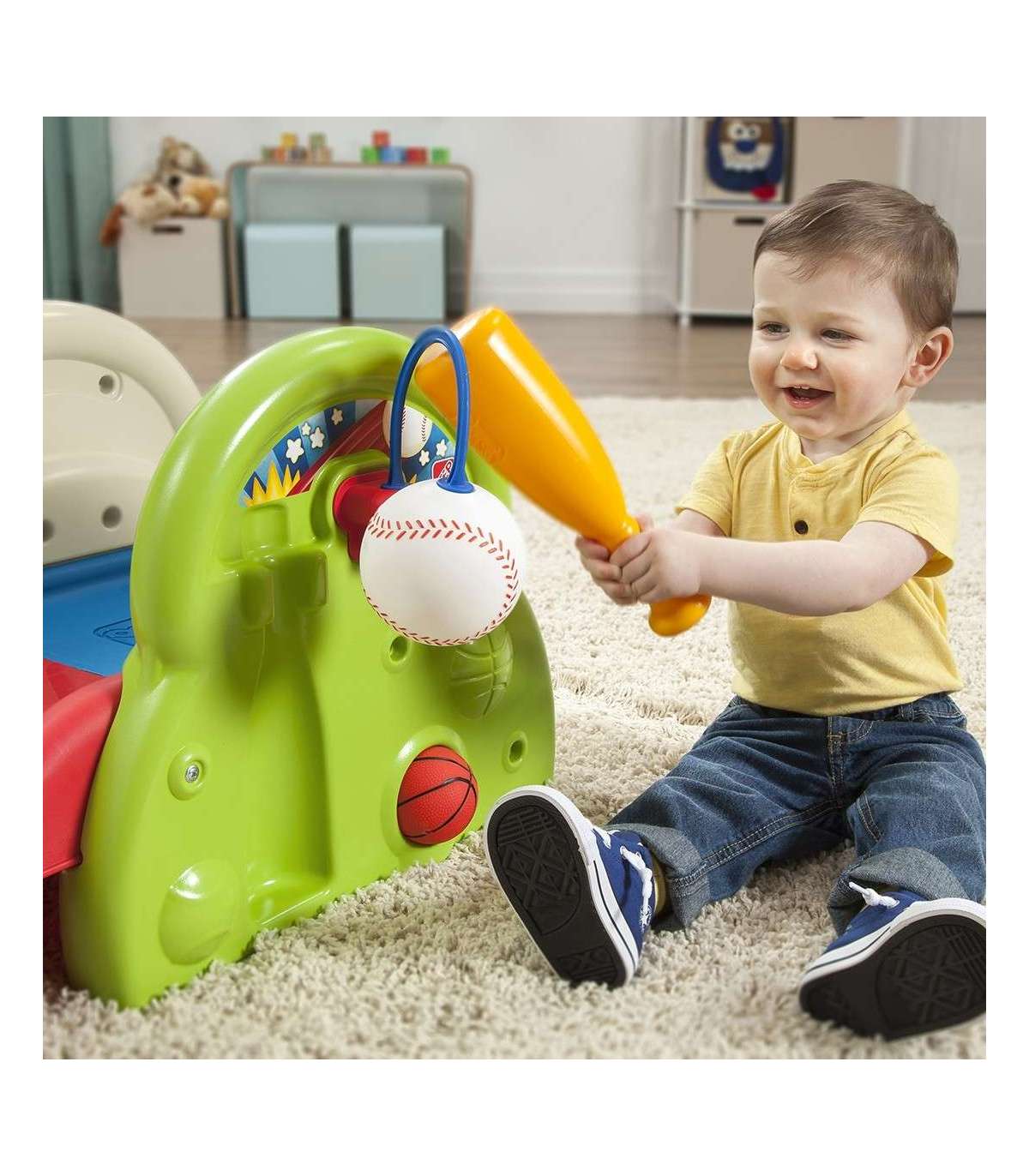 Mänguväljak firmalt STEP2 pakub palju mänguvõimalusi. Selles kaasahaaravas aktiivsuslinnakus väikestele lastele on peamiselt sporditeema. Lapsed saavad harjutada tasakaalu ja motoorikat, ronides väga laiast astmest ja liugledes teisel pool liumäge. Seal on ka pall ja korvirõngas, mis võimaldavad lapsel visata eesmärki. Lisaks võib kasutada kaasaantud kepi, et lüüa kinnitatud pesapallipalli! Tänu sellele väikelastele mõeldud spordimänguasjale hüppab su väike põngerjas koju, libiseb baasi ja teeb mängides hämmastavaid pealtviskeid. Kui mäng on läbi, kasuta sisseehitatud hoiukohta, et korvpall ära paigutada, ning suru kepp aktiivsuskeskuse välisseina külge, et kõik oleks järgmiseks mängupäevaks käepärast.