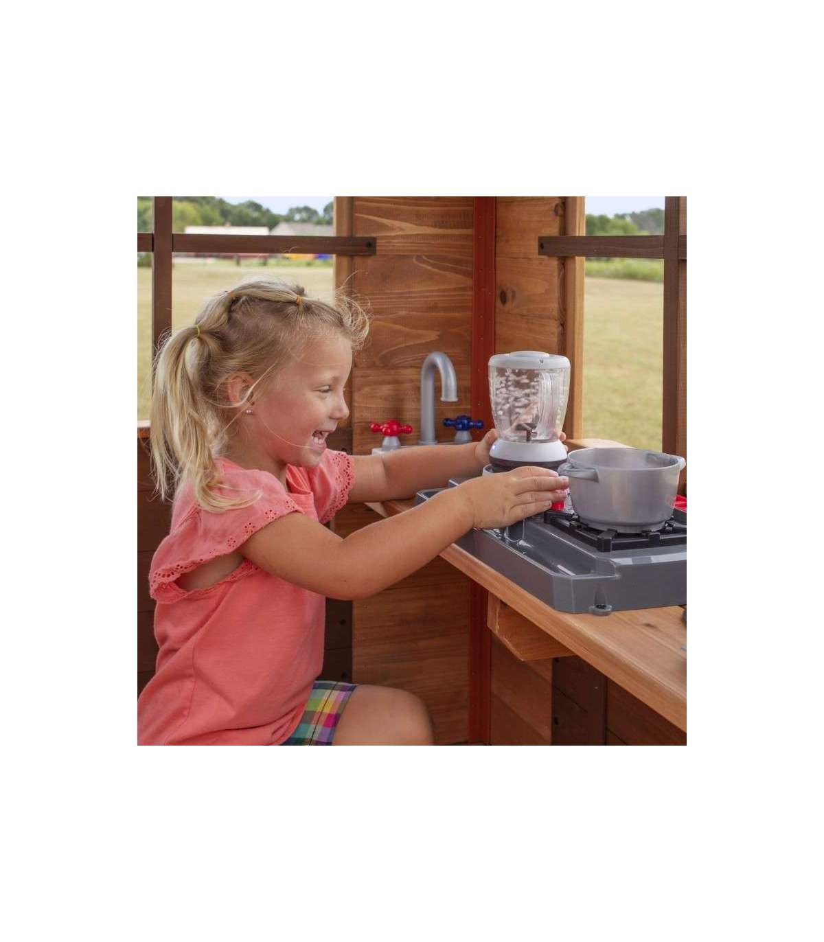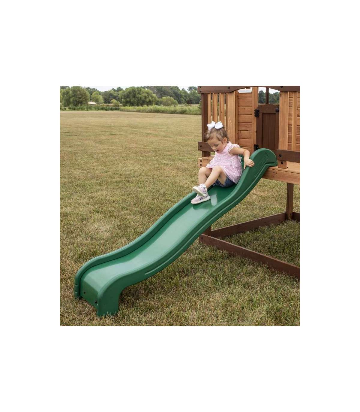 Echo Heights mänguväljak firmalt Backyard Discovery pakub tunde imelist lõbu teie enda tagahoovis. Tänu kompaktsele konstruktsioonile sobib see mängumaja ideaalselt igasse aeda. Väikesed lapsed rõõmustuvad mänguelementide üle, nagu mänguköök, patareitoitega seade, ülikiire liumägi ja paljud muud aksessuaarid. Funktsionaalsed topeltuksed ja suured avatud aknad võimaldavad teie lapsel mängides kõike ümberringi näha. Redel laiaastmeliste astmetega võimaldab lihtsat juurdepääsu eri vanuses lastele. Kasutage kaasasolevat kasvumõõdikut lapse pikkuse jälgimiseks ja mälestuste loomiseks koos. Kui teie laps mängu lõpetab, saab ta kiiresti liumäest alla sõita.