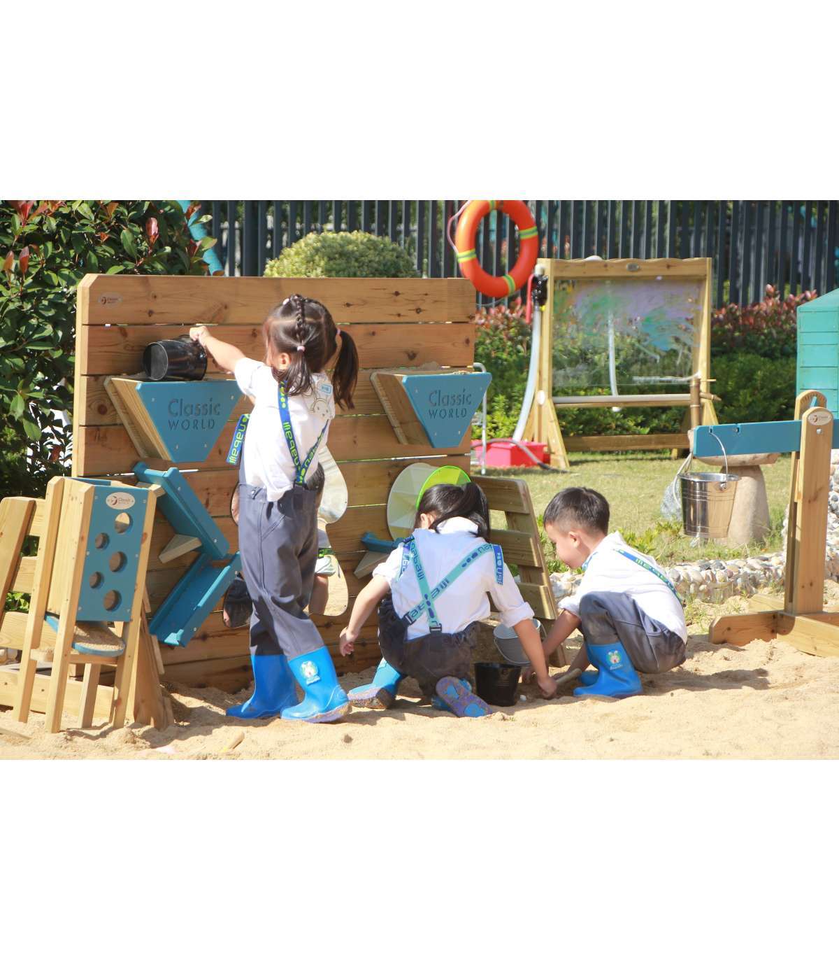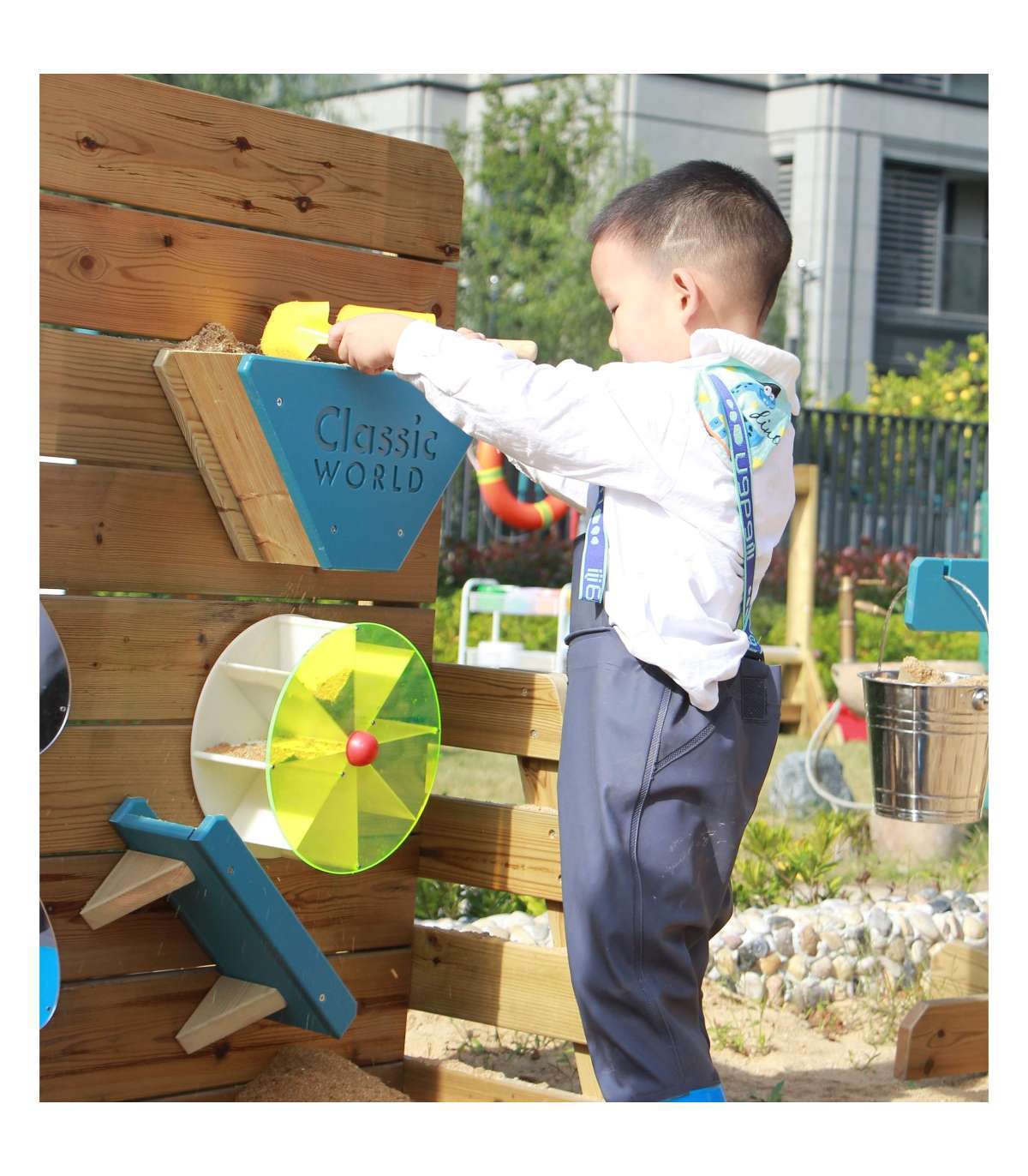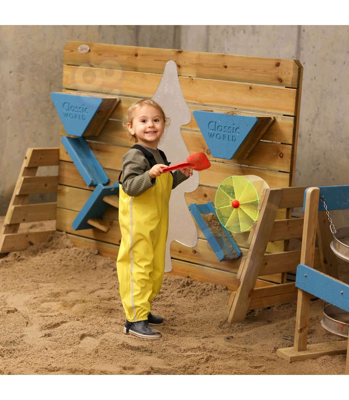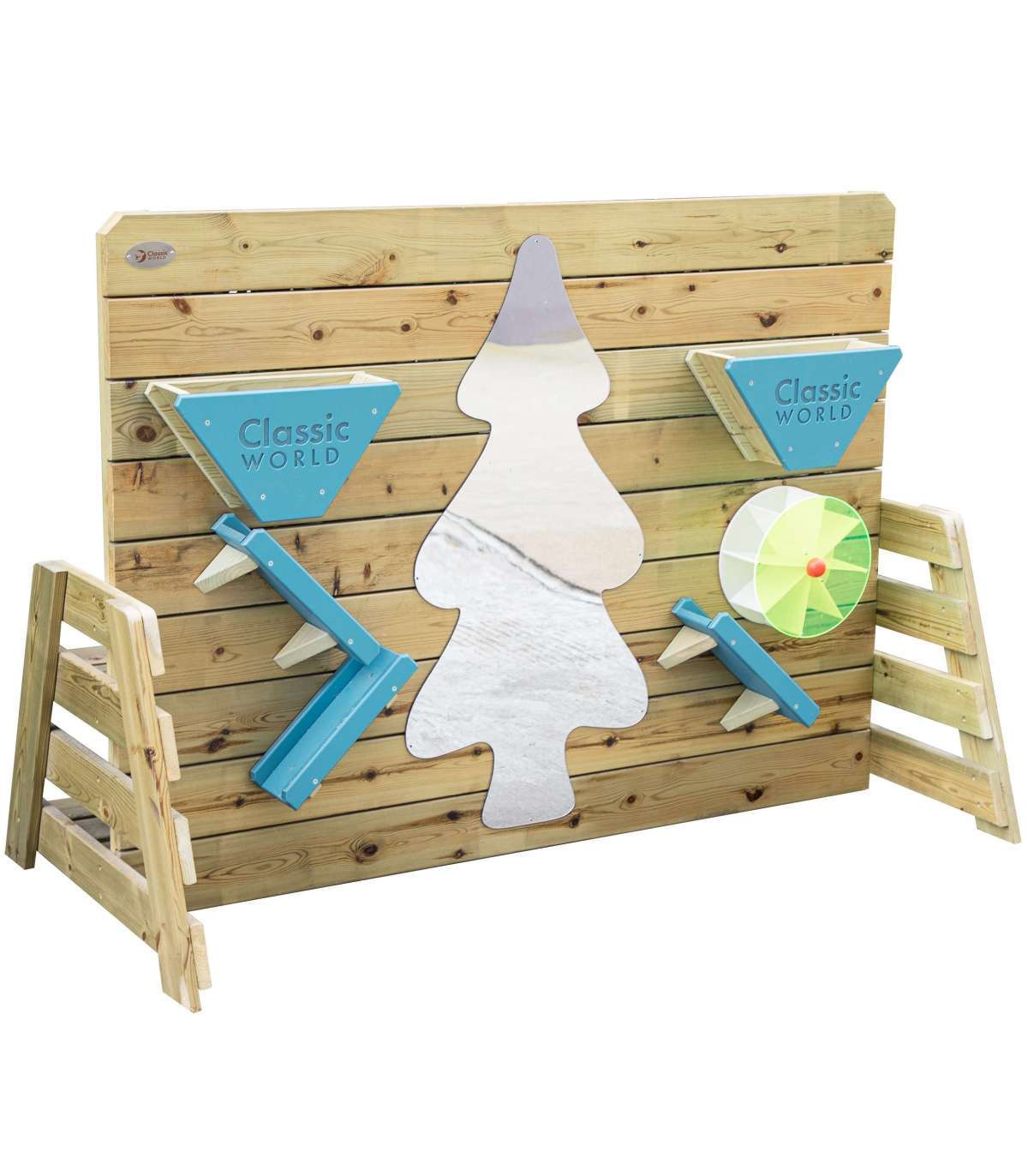 Puidust mängupaneel kaubamärgilt CLASSIC WORLD on suurepärane lahendus mänguväljaku või koduaia täiendamiseks. See on multifunktsionaalne komplekt, mis koosneb mänguosast ja puhkepoolest. Toode on valmistatud kõrge kvaliteediga puidust, värvitud mittetoksilise immutusega - täiesti ohutu lastele. Paremal küljel on kurn - lihtsalt täitke see liivaga ja vaadake, kuidas see voolab läbi ava, mis paneb ratta liikuma. Vasakul küljel on samuti kurn, kuhu valame liiva ja vaatame, kuidas see voolab läbi ava mängu kaldele, luues liu. Keskel on peegelfoolium kuusekujul, mis kindlasti meeldib teie lapsele! Teisel pool paneeli on puhkeala - mugav puidust ping. Laps saab sellel istuda ja pärast mängu panna mänguasjad alumisele riiulile.
