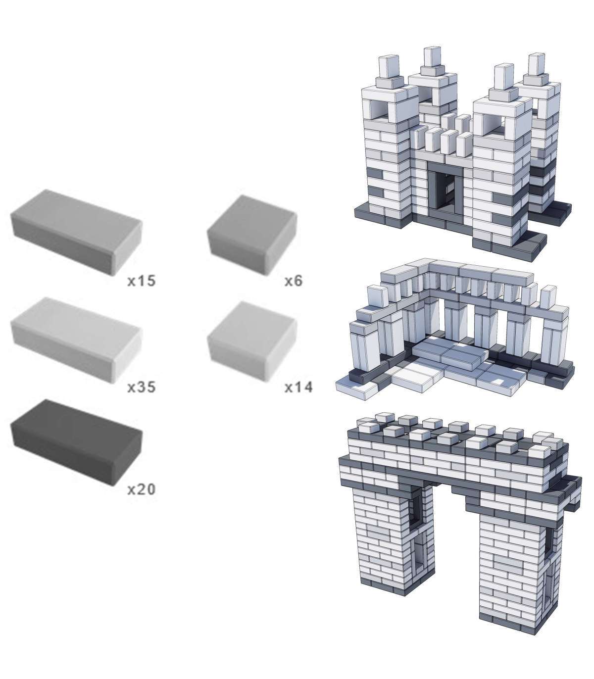 Siin on mõned näited, kuidas neid klotse ehitamiseks kasutada: