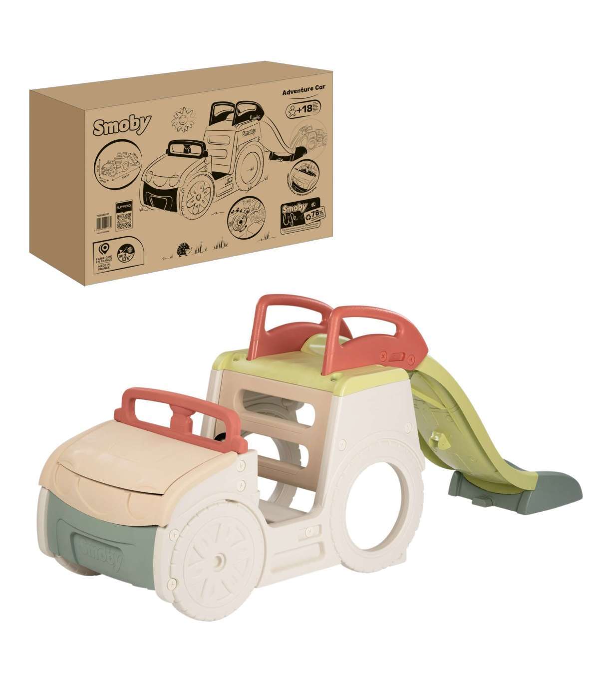 Smoby seiklusauto 3-ühes on eriline õuemänguasi, mis ühendab aktiivse mängu, loovuse ja füüsilise arengu. Tänu vastupidavast materjalist ja ANTI-UV kattele rõõmustab mänguasi lapsi kaua. Ideaalne aeda, pakkudes meelelahutust kogu päevaks. Seiklusauto on ideaalne õue mänguruum kõige väiksematele! See eriline mänguväljak, inspireeritud maasturist, viib lapsed põnevate rännakute ja seiklusteni.