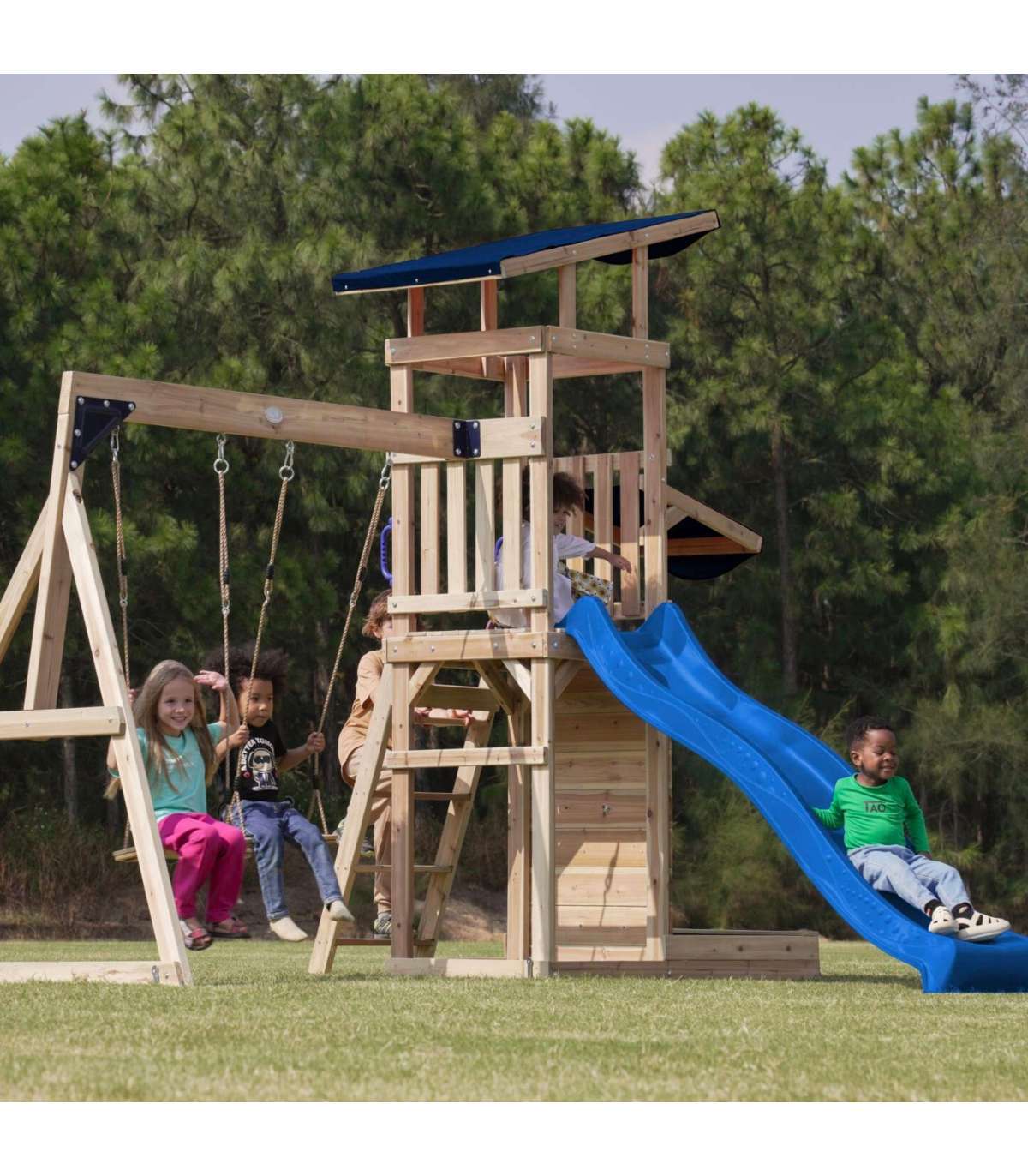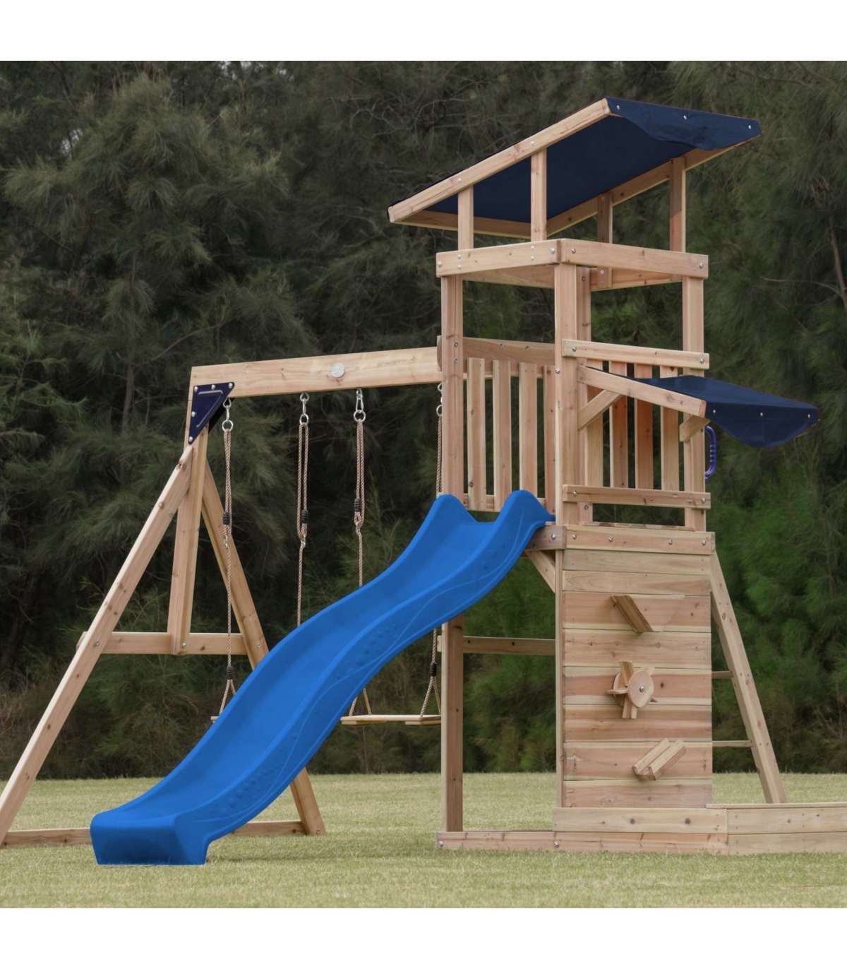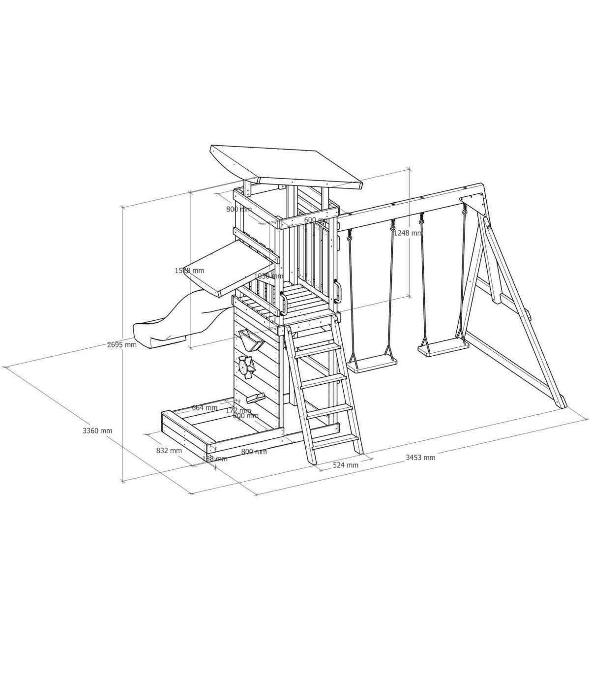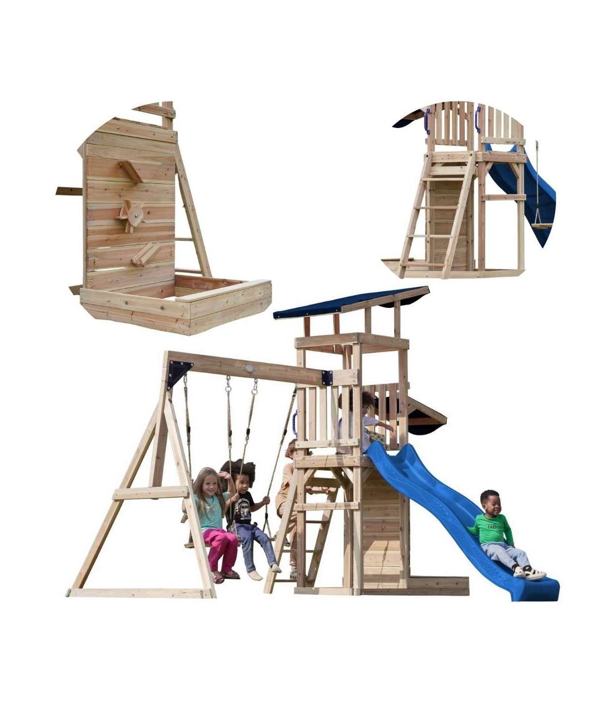✔ Tänu mitmekülgsetele elementidele – vaatetorn, pikk liu, topelkiik ja liivakast – saavad lapsed ühes kohas arendada oma loovust, jõudu ja motoorikat!