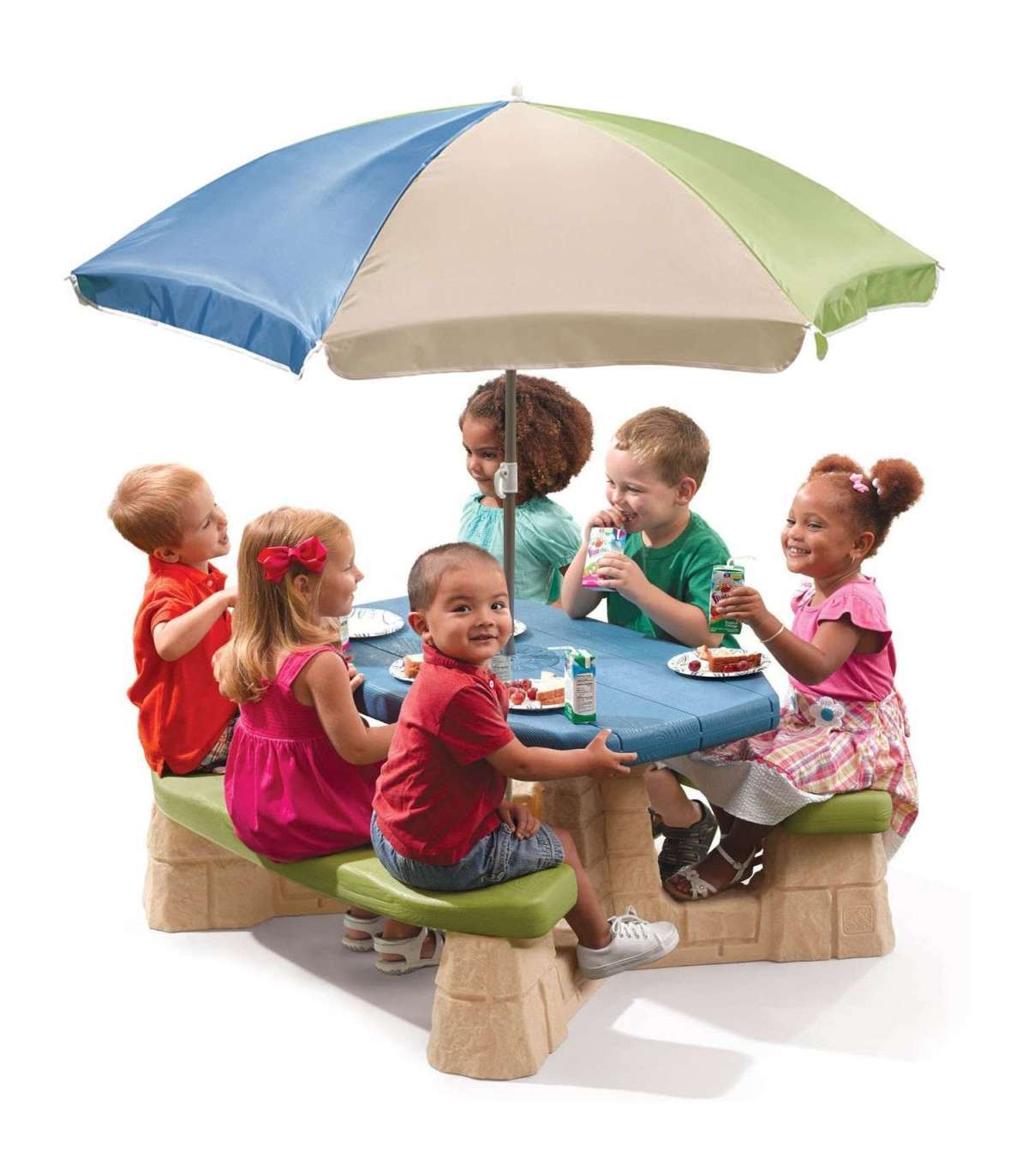 Piknikulaud kuuele lapsele kahe pingiga, millel on spetsiaalselt kujundatud istmed. Valmistatud tugevast plastikust topeltseinaga, mis on seest täidetud õhuga. Elementide märkimisväärne paksus, vähemalt 5–6 cm, tagab lauaplaadi pika kasutusea ning suur, massiivne lauaplaat (üle 100 cm pikk ja 50 cm lai) koos laua stabiilse konstruktsiooniga tagavad mänguohutuse. Komplektis olev päikesevari kaitseb UV-kiirguse eest. Maa ja lauaplaadi vaheline kõrgus, vähemalt 50 cm, võimaldab lauda kasutada erineva pikkusega lastel.