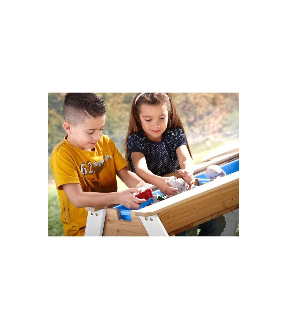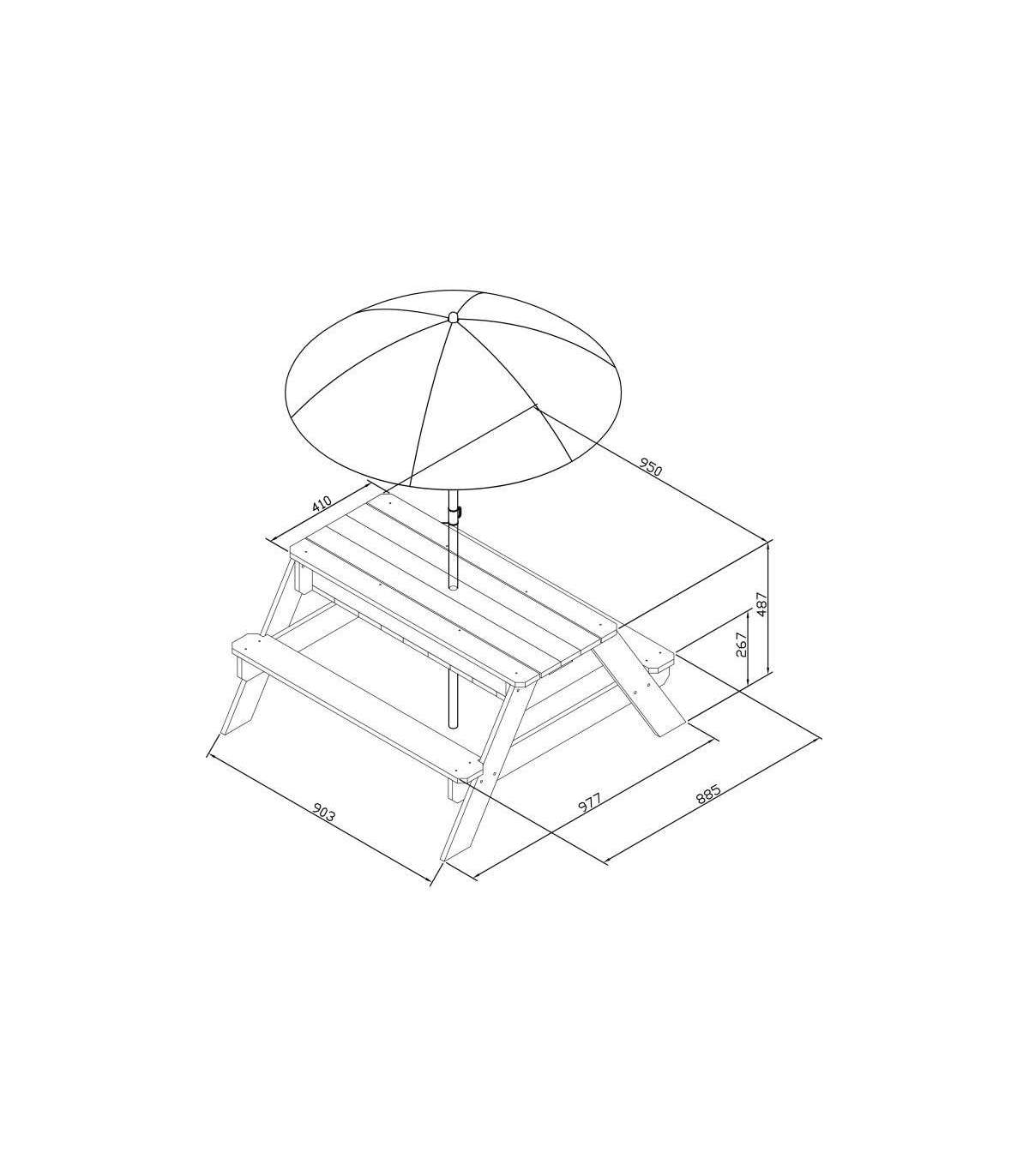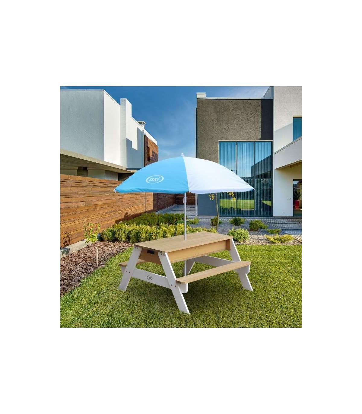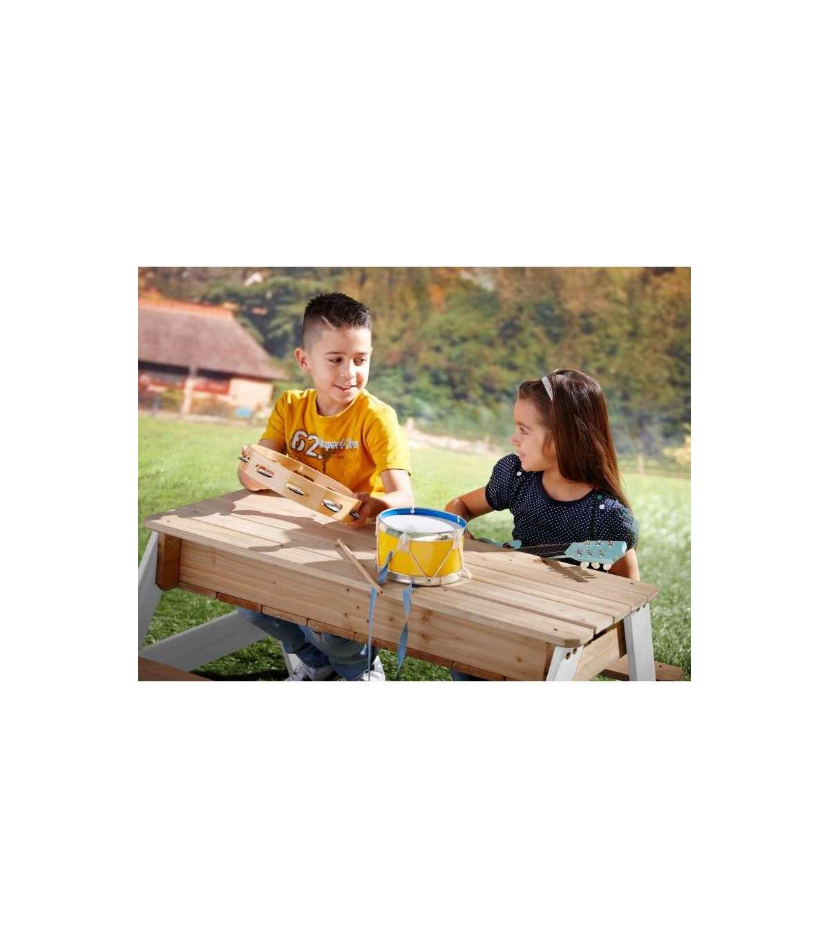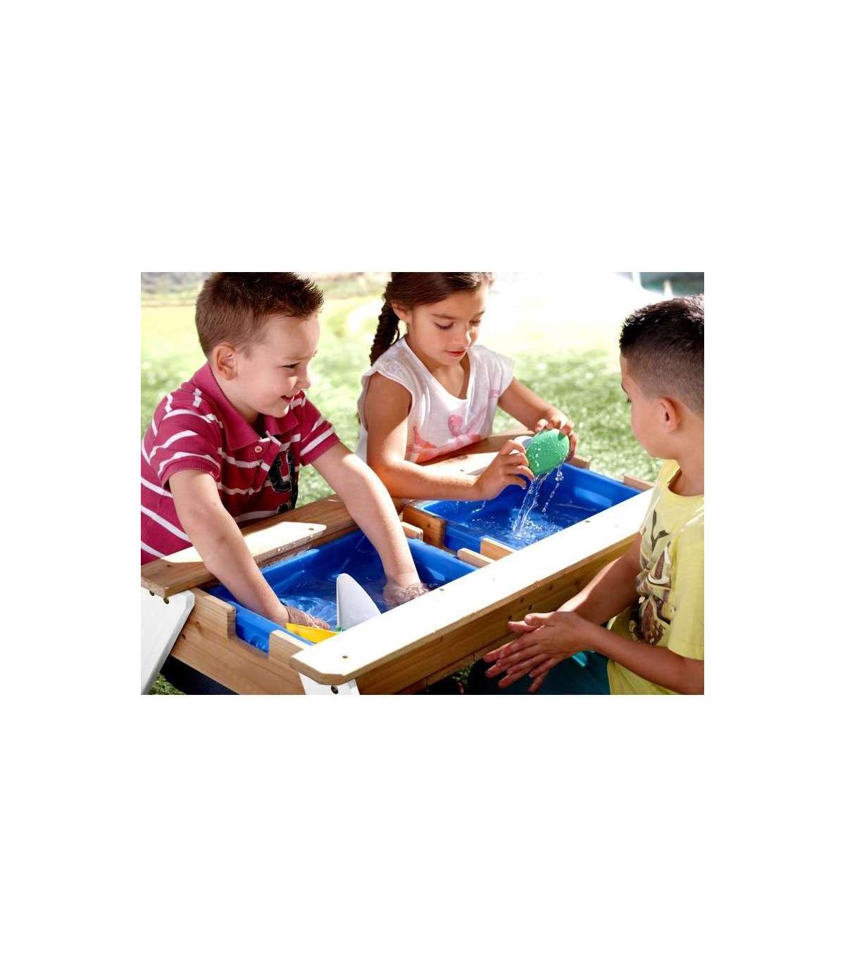 Nicki piknikulaud tuntud margilt AXI on multifunktsionaalne laud, millel on peidetud ladu kahe sinise anumaga eemaldatava lauaplaadi all. Need sinised anumad saab täita liiva ja/või veega, kuid neid võib muidugi kasutada ka mänguasjade hoiustamiseks. Lisaks on anumad eemaldatavad, mis teeb nende puhastamise lihtsaks. Klassikaline liiva ja vee kombinatsioon toimib laste puhul alati! Silmapilkselt saab liiva- ja veelauda muuta piknikulauaks, kus lapsed saavad luua, joonistada või nautida maiustusi.