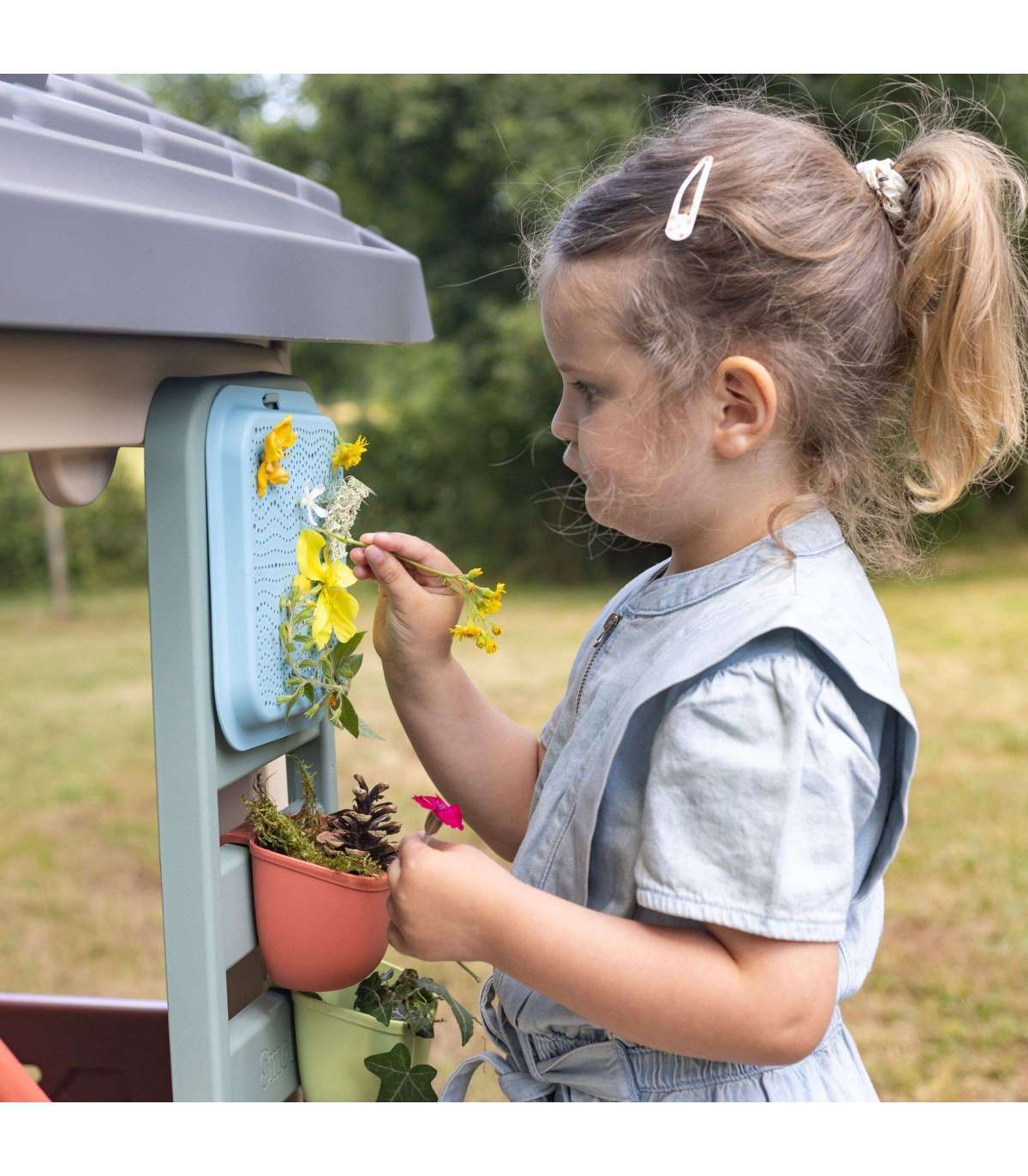 - - A friendly playhouse inspired by a mud kitchen – perfect for a garden , terrace or large balcony