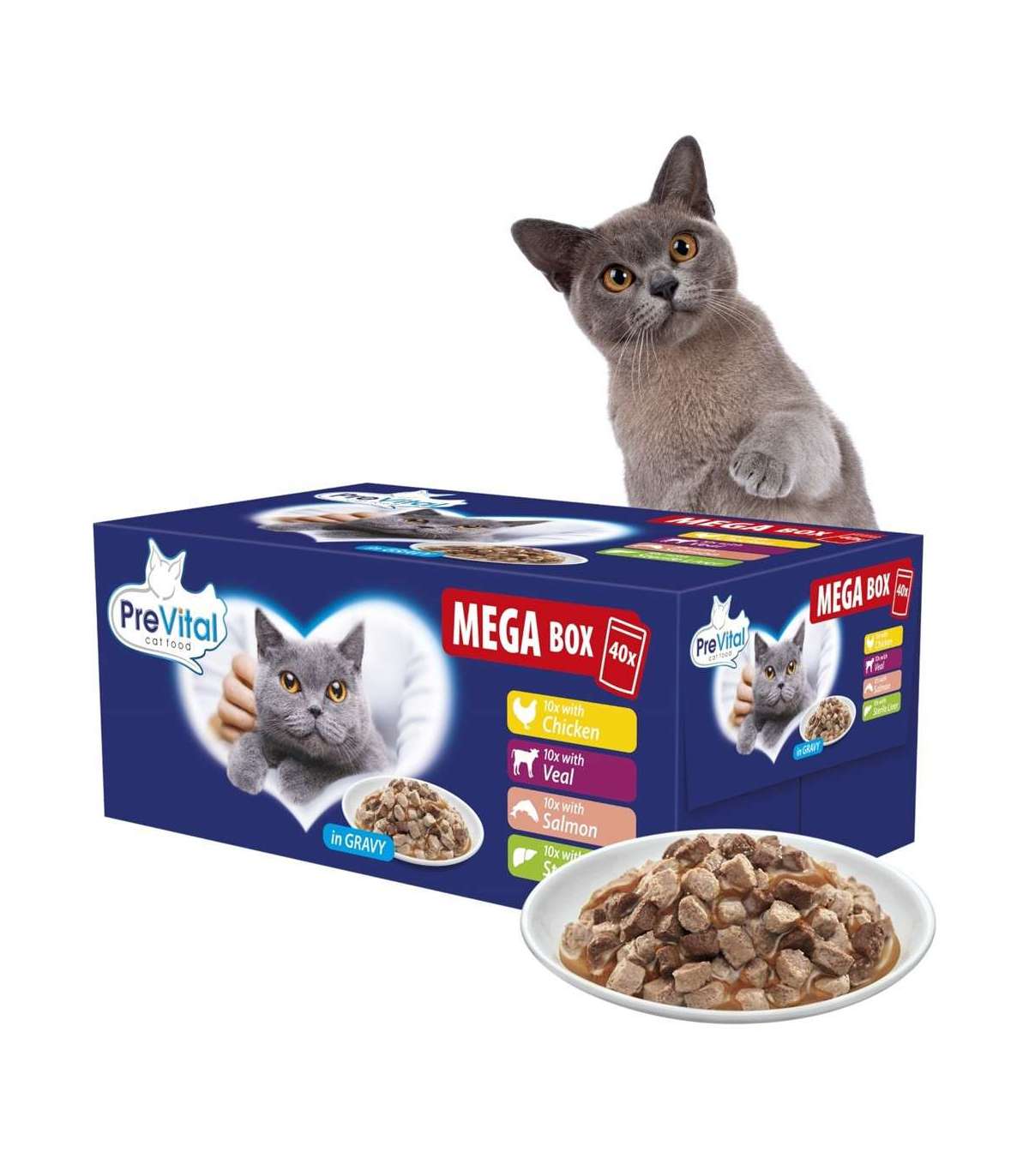 PREVITAL Mega Box Veal, salmon, liver, chicken - wet cat food - 40X100g