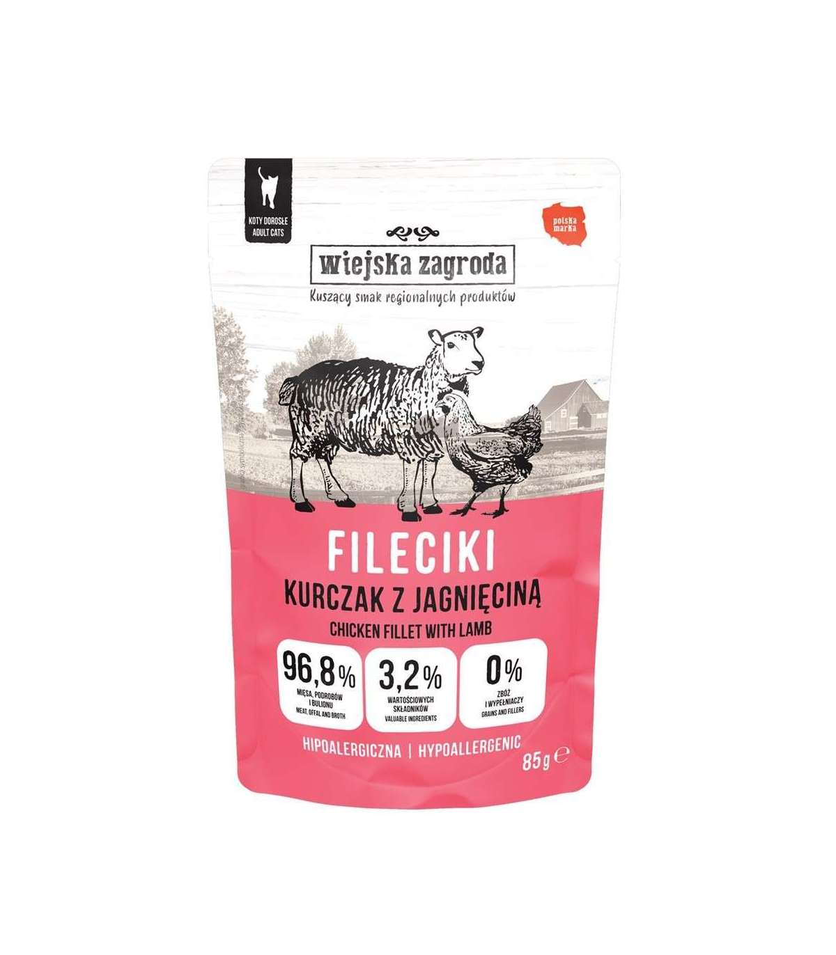 WIEJSKA ZAGRODA Chicken Fillets with Lamb – wet food for cats – 85g