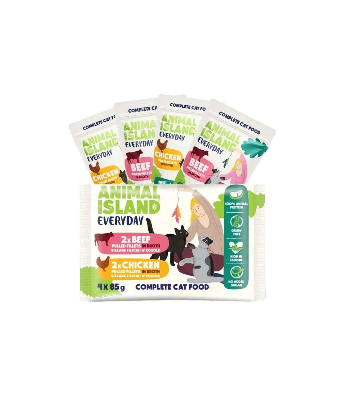 ANIMAL ISLAND Everyday Chicken and Beef fillets in broth - wet cat food - 4 x 85g