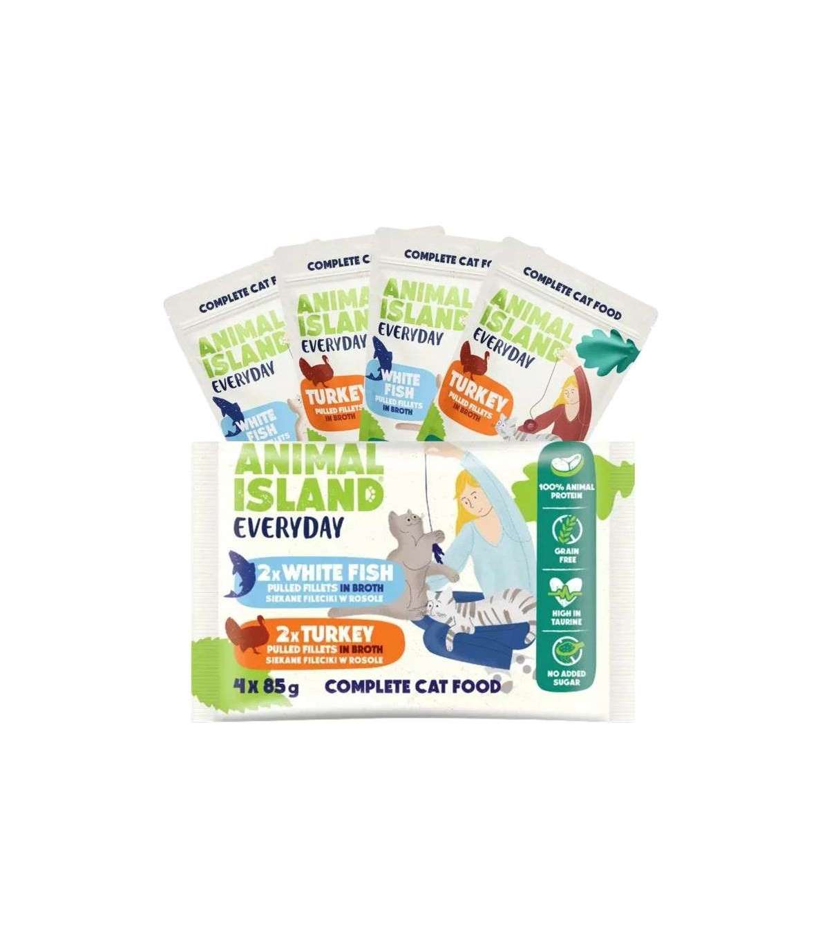 ANIMAL ISLAND Everyday Turkey and White fish fillets in broth - wet cat food - 4 x 85g
