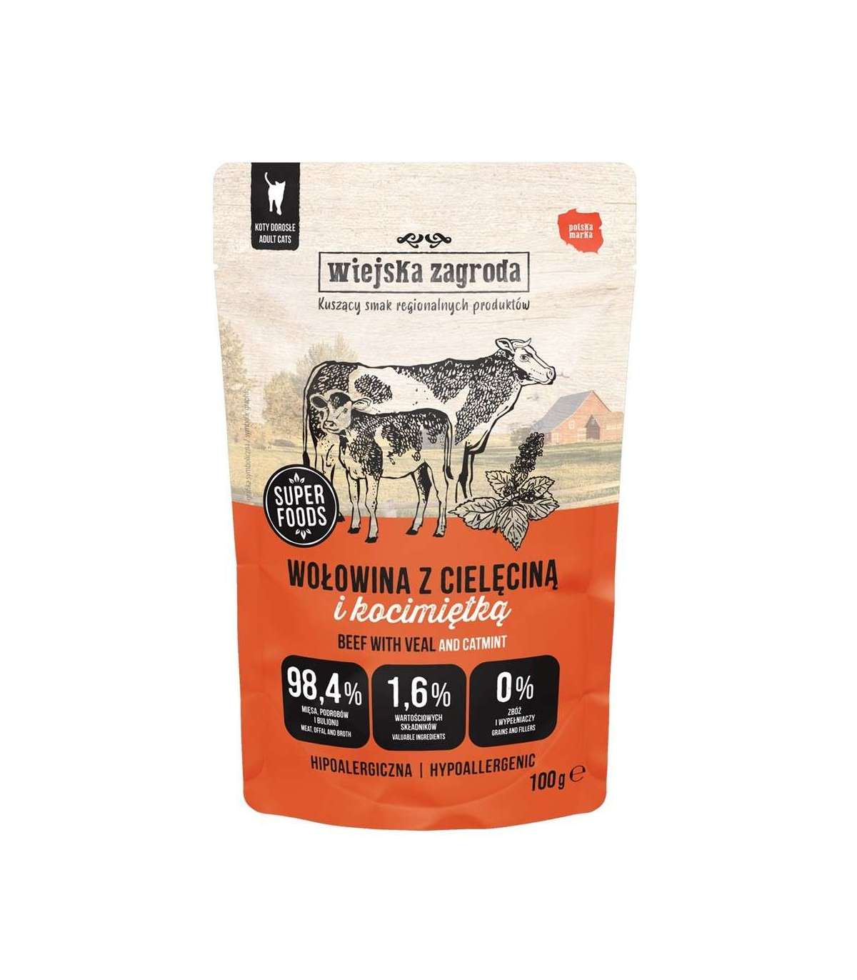 WIEJSKA ZAGRODA Beef with veal and catnip – wet food for cats – 100g