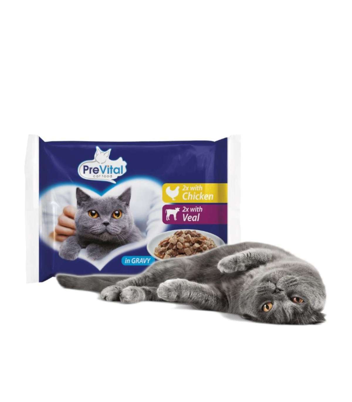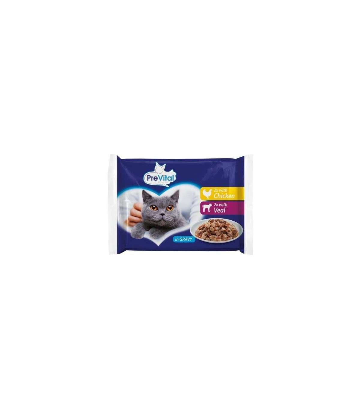 PREVITAL Chicken and veal in gravy - wet cat food - 4 x 100g