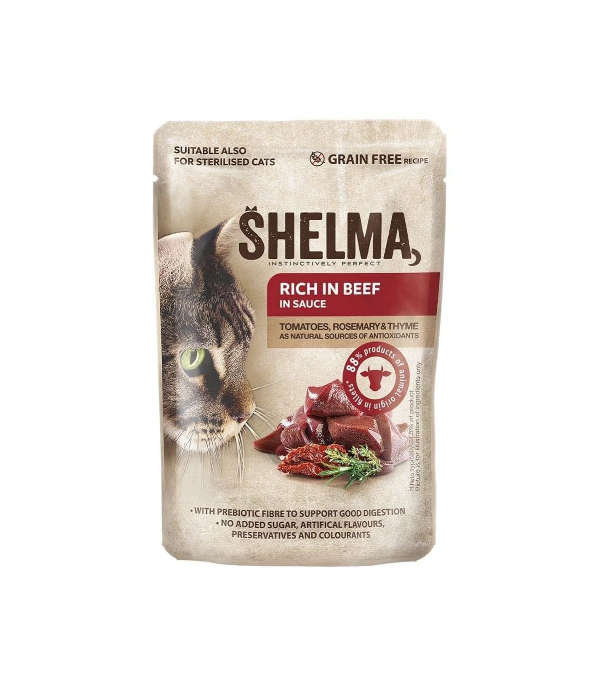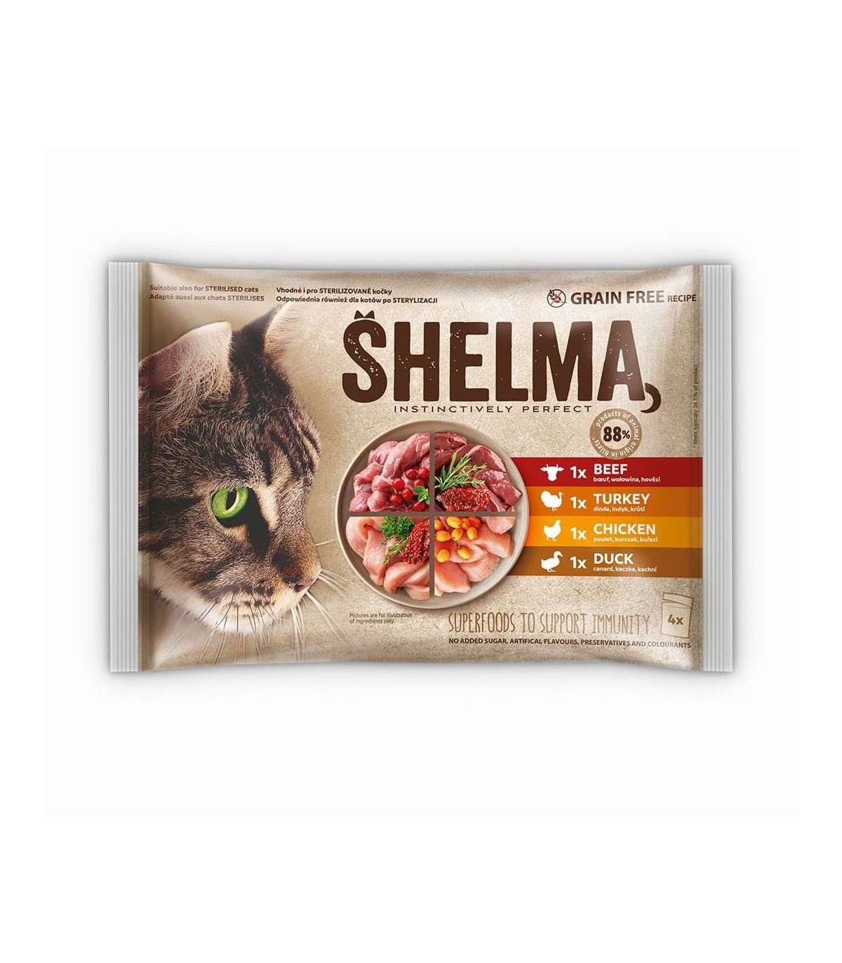 SHELMA Rich in chicken, turkey, beef and duck - wet cat food - 4x85g