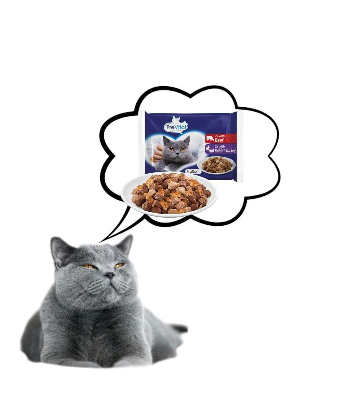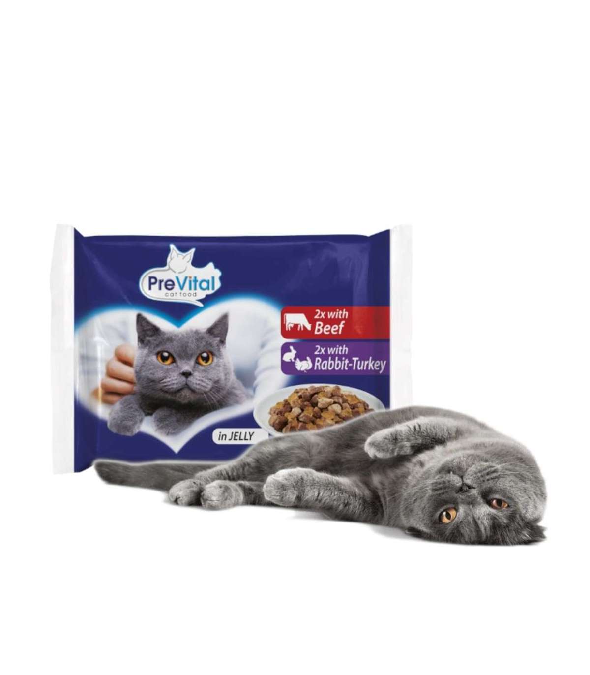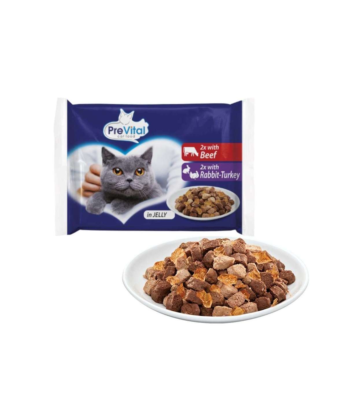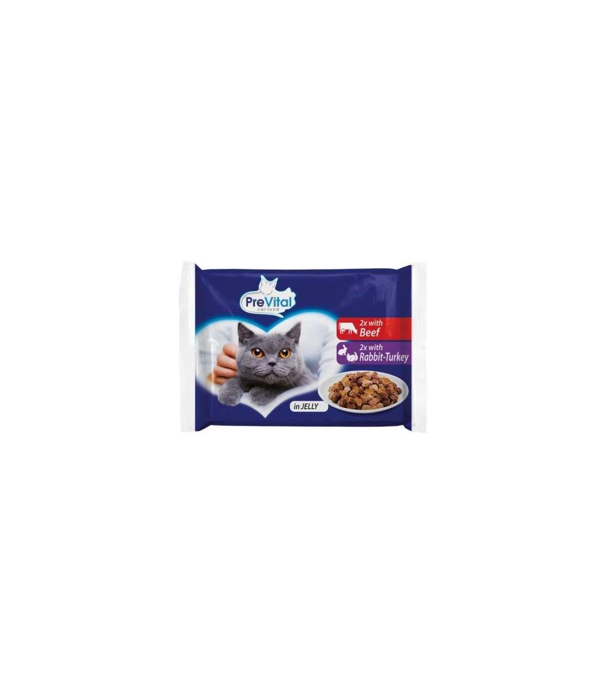 PREVITAL Beef and rabbit with turkey in jelly – wet cat food – 4 x 100g
