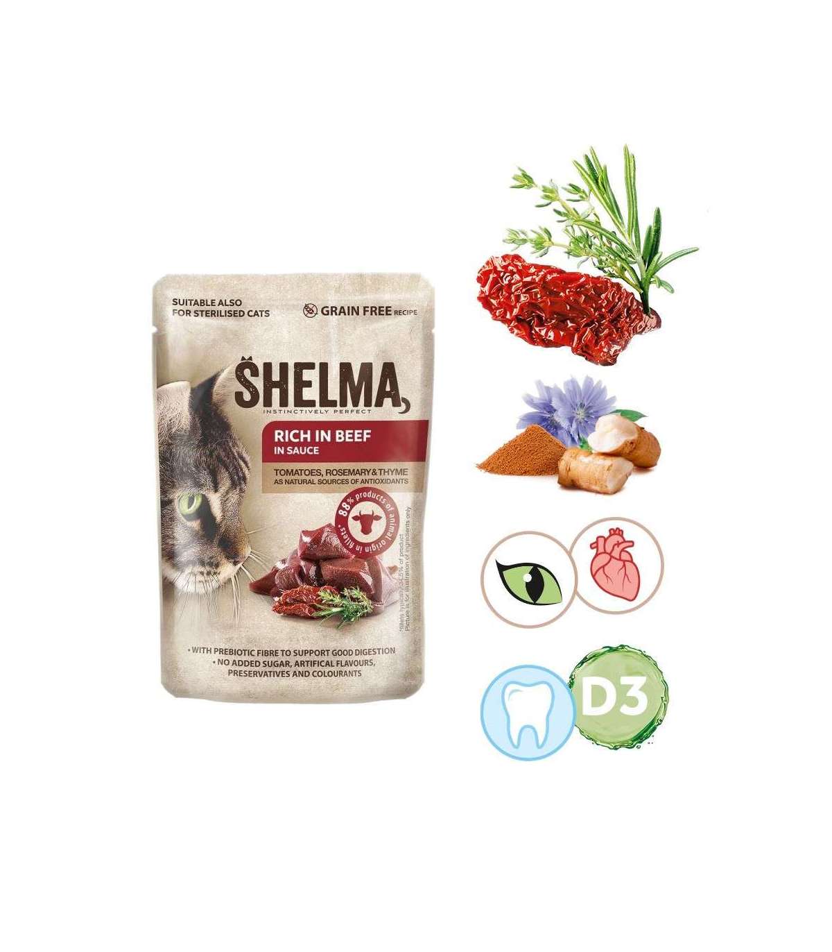 SHELMA Rich in beef in sauce - wet cat food - 85g