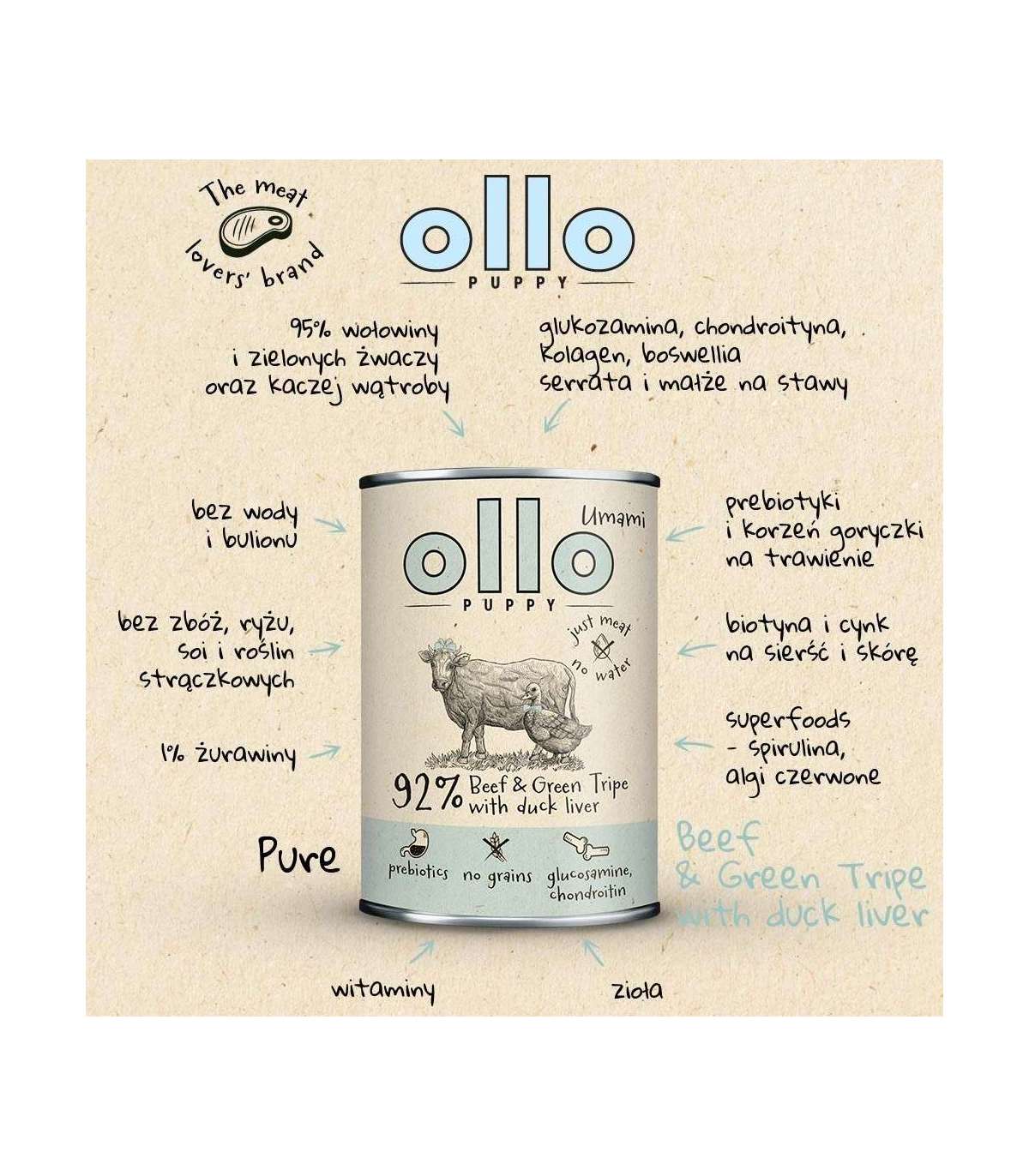 OLLO Puppy Umami Beef and Green Tripe with Duck Liver - wet dog food - 400g