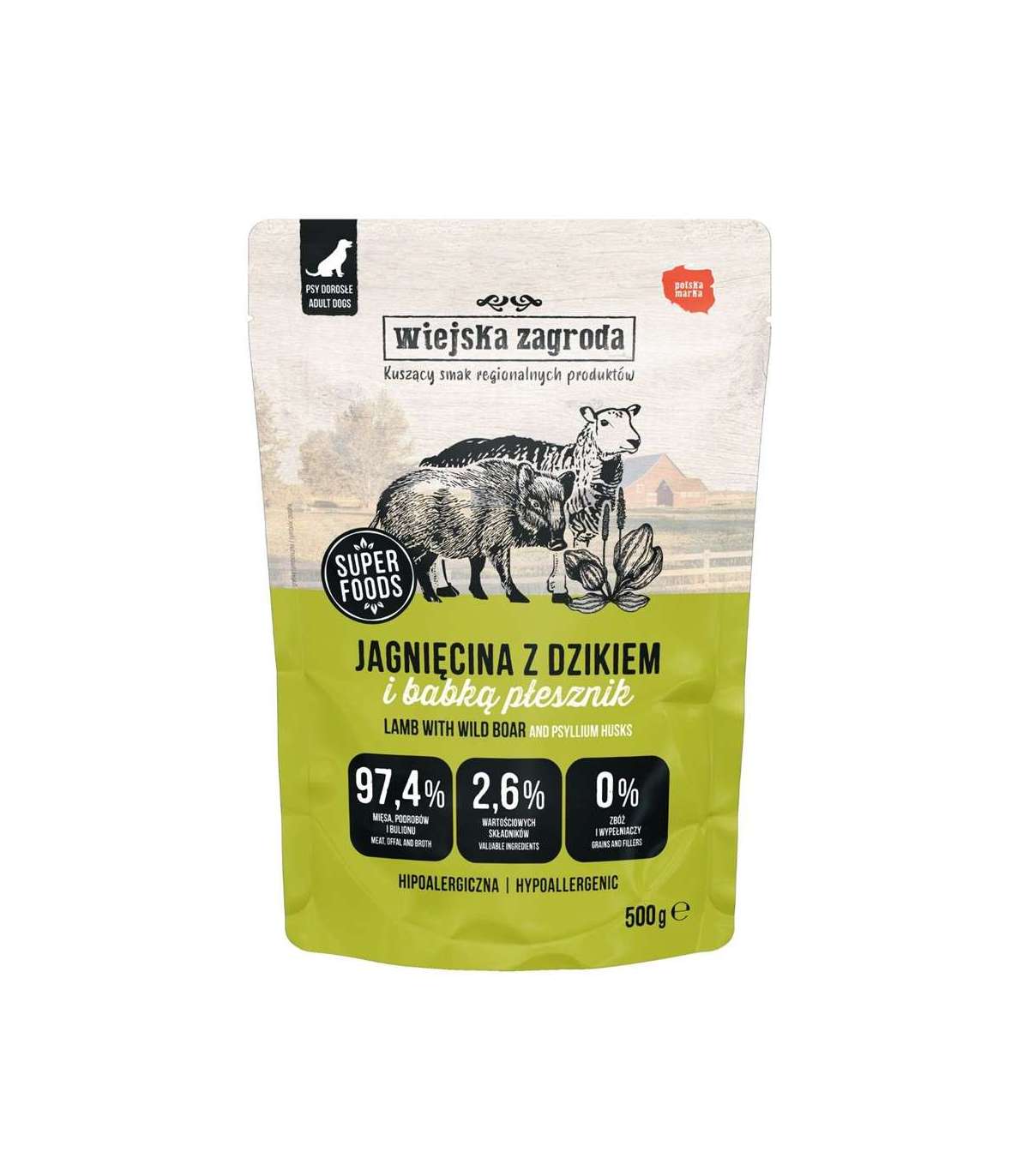 WIEJSKA ZAGRODA Lamb with wild boar - wet dog food - 500g
