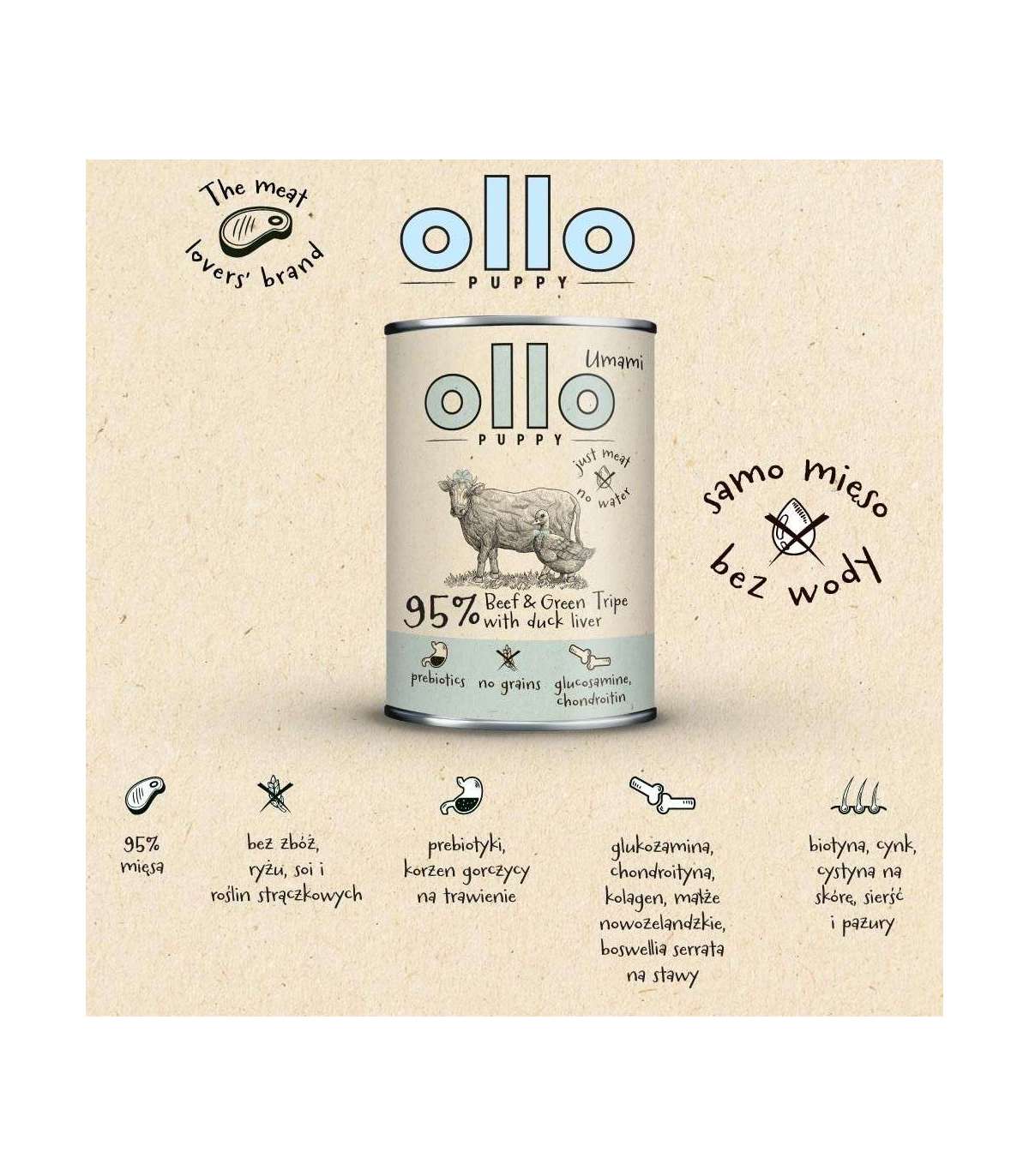 OLLO Puppy Umami Beef and Green Tripe with Duck Liver - wet dog food - 850g