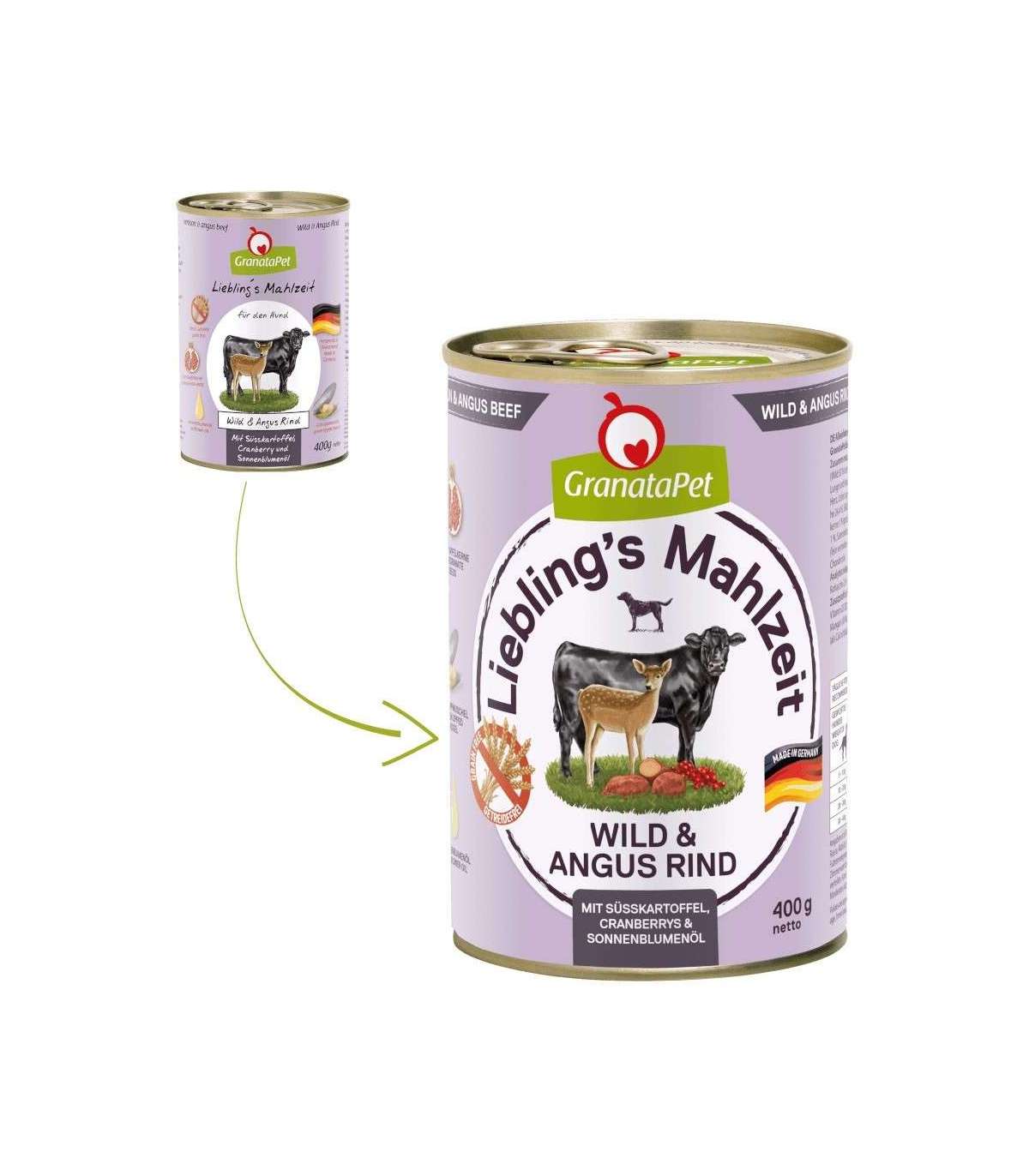 GRANATAPET Liebling's Mahlzeit Venison and angus beef - wet dog food - 800g