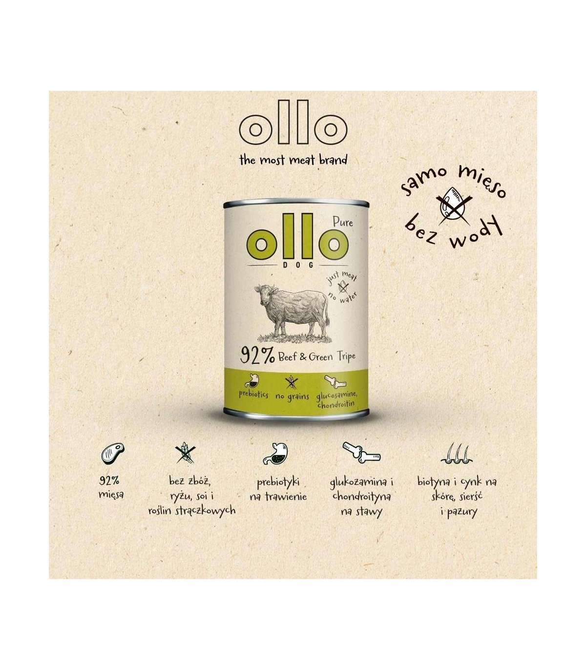 OLLO Pure Beef and Green tripe - wet dog food - 400g