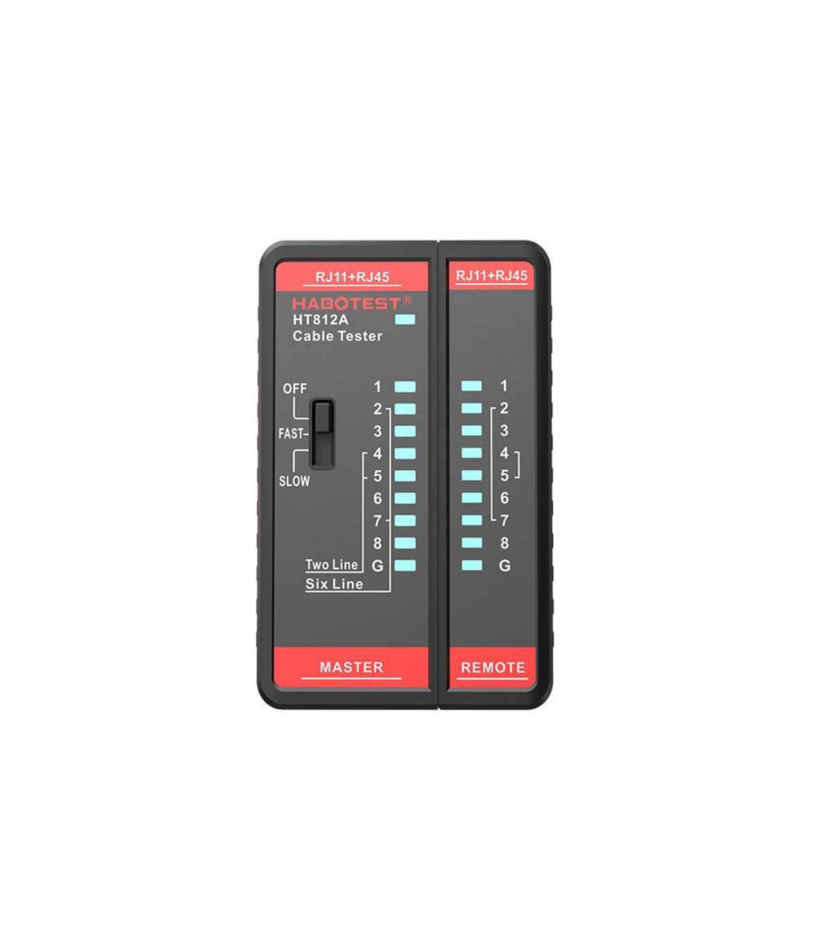 With the help of the Habotest HT812A cable tester, you will successfully obtain information about the performance of cables with RJ11 and RJ45 connectors. You will easily check the performance values of telephone and network cables. The device features a compact, fold-out design. It draws power from 2 AAA batteries.