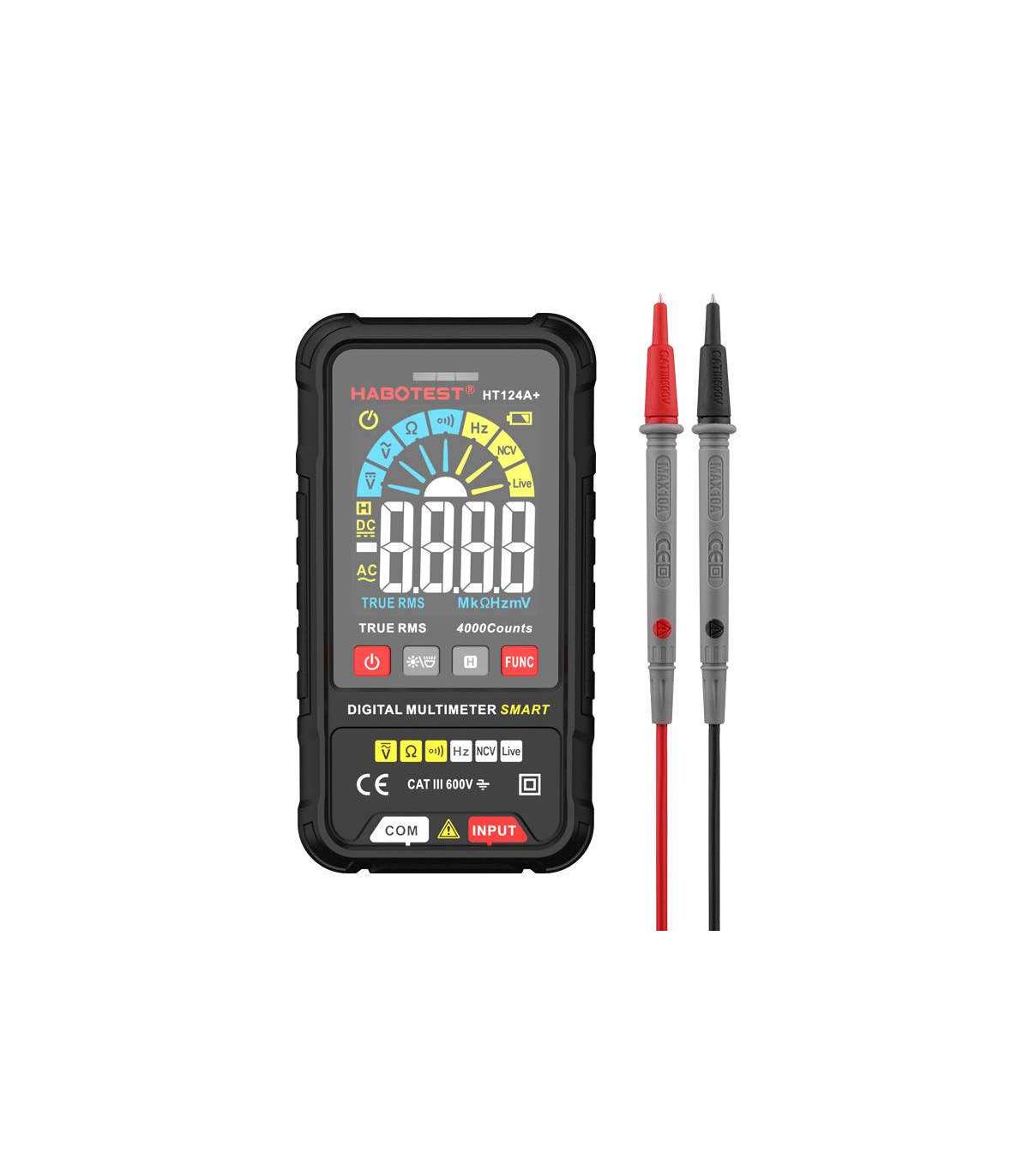 Habotest HT124A+ digital universal multimeter is a handy device that surprises with the enormity of its capabilities. It allows to measure with high precision AC and DC voltage, resistance, continuity or frequency, among others. In addition, it offers a Live Test function, enables non-contact voltage detection (NCV) and much more. Importantly, the multimeter has practical buttons with which you can efficiently select a function.