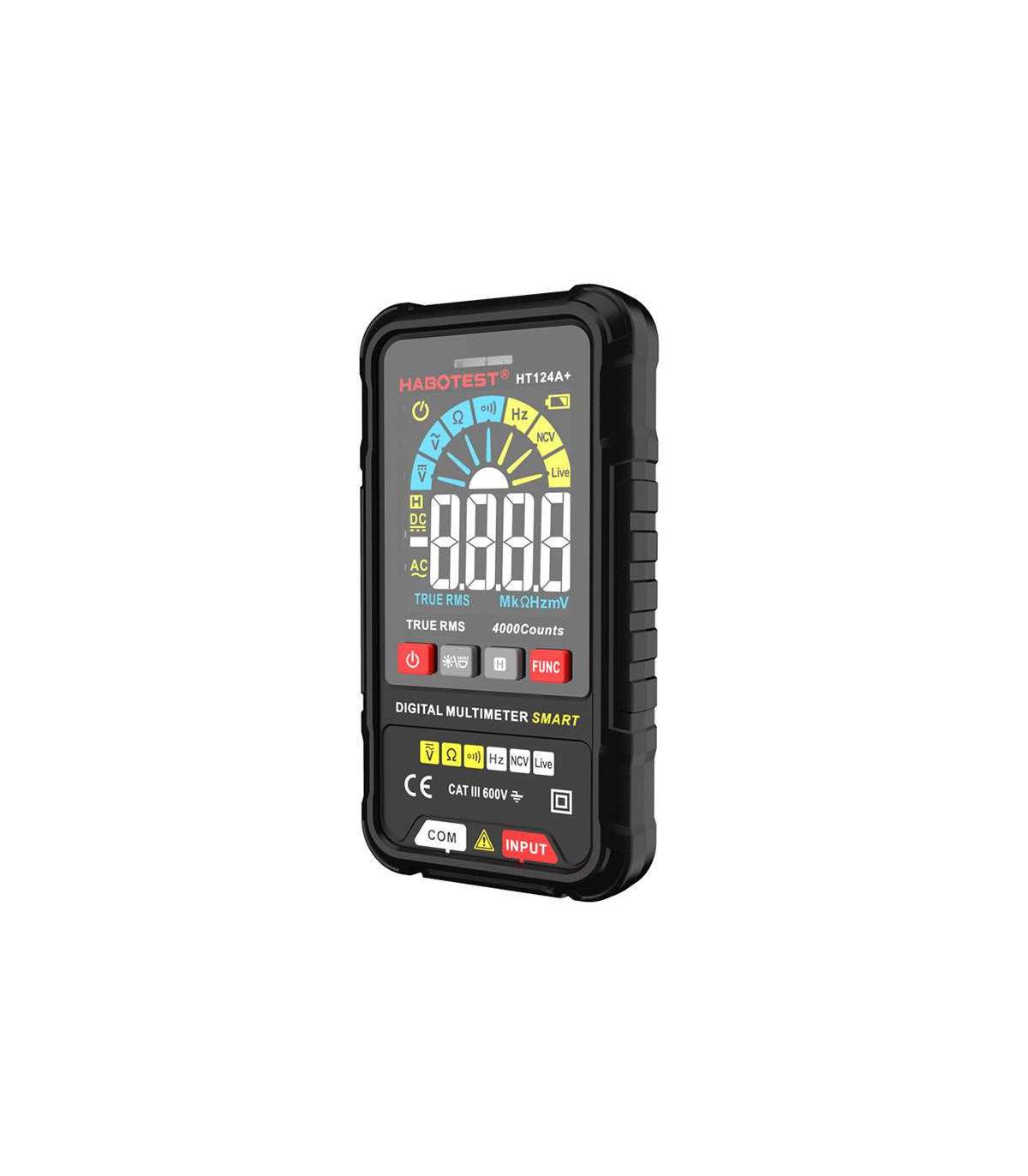 Habotest HT124A+ digital multimeter is a multifunctional device that will prove useful during electrical work. The product allows you to measure voltage, resistance and many other values. The multimeter has an easy-to-read display that allows you to conveniently read the measurement results, moreover, it is equipped with a flashlight and practical buttons.