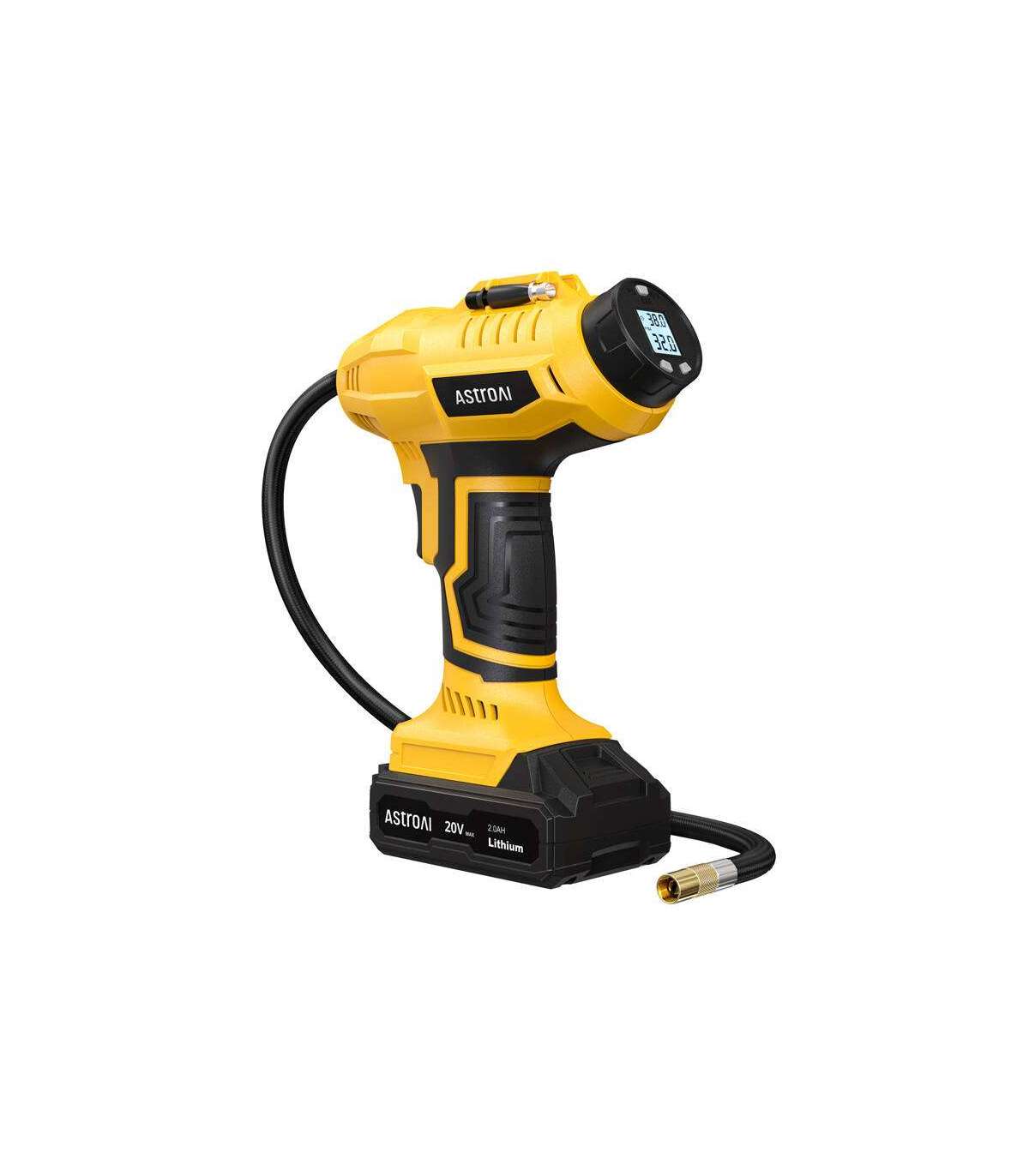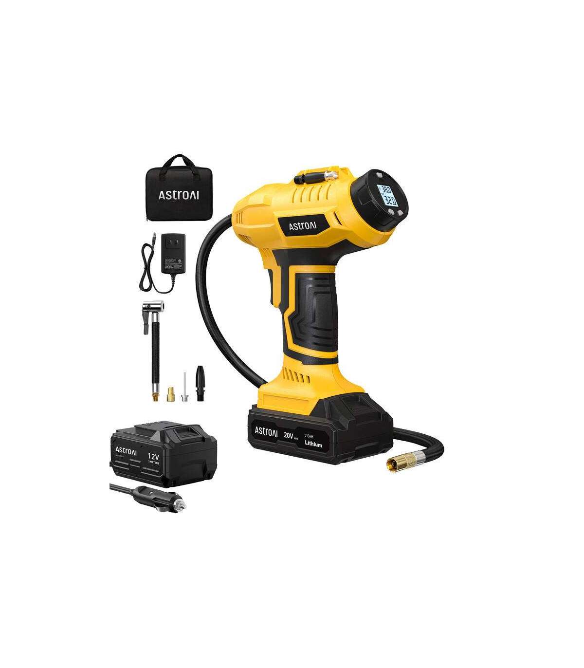 The AstroAI device is equipped with a powerful 2.0 Ah battery, allowing up to 20 minutes of continuous operation - long enough to inflate a car tire about 4 times, a motorcycle tire about 14 times, a bicycle tire about 17 times or a basketball about 87 times. The inflator will recharge within an hour, and LED indicators show its status.